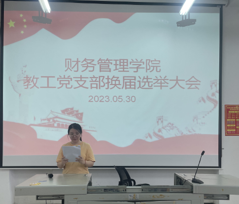 首先,由原教工党支部青年委员邓青作工作报告,全面回顾教工党支部2023年1-5月份开展的主要活动与各项工作,分析存在的不足,提出今后的工作思路。全体党员对支委的工作给予了高度肯定,并充分酝酿了下一届支委候选人初步人选。随后,宣传委员彭荩娴宣读《教工党支部换届选举办法》,吴丽文介绍党支部委员候选人产生办法和候选人基本情况,推选了监票人、计票人名单。在投票环节中,支部严格按照公平、公正、公开的原则,由专门监票人和计票人唱票并宣读结果。会议依照《中国共产党章程》《中国共产党基层组织选举工作条例》等规定程序,规范选举工作中各个步骤、环节和程序,流程规范,手续齐全,充分保障党员群众在换届选举中的知情权、参与权、选举权和监督权的落实。经党员大会无记名差额投票选举产生新一届教工党支部委员会委员,陈君涛、邓青、吴丽文、陈纲、彭荩娴五名同志当选为党支部新一届委员会委员。之后,陈君涛作为新当选的党支部委员代表讲话,表示教工党支部今后将以全新的面貌迎接未来的挑战!