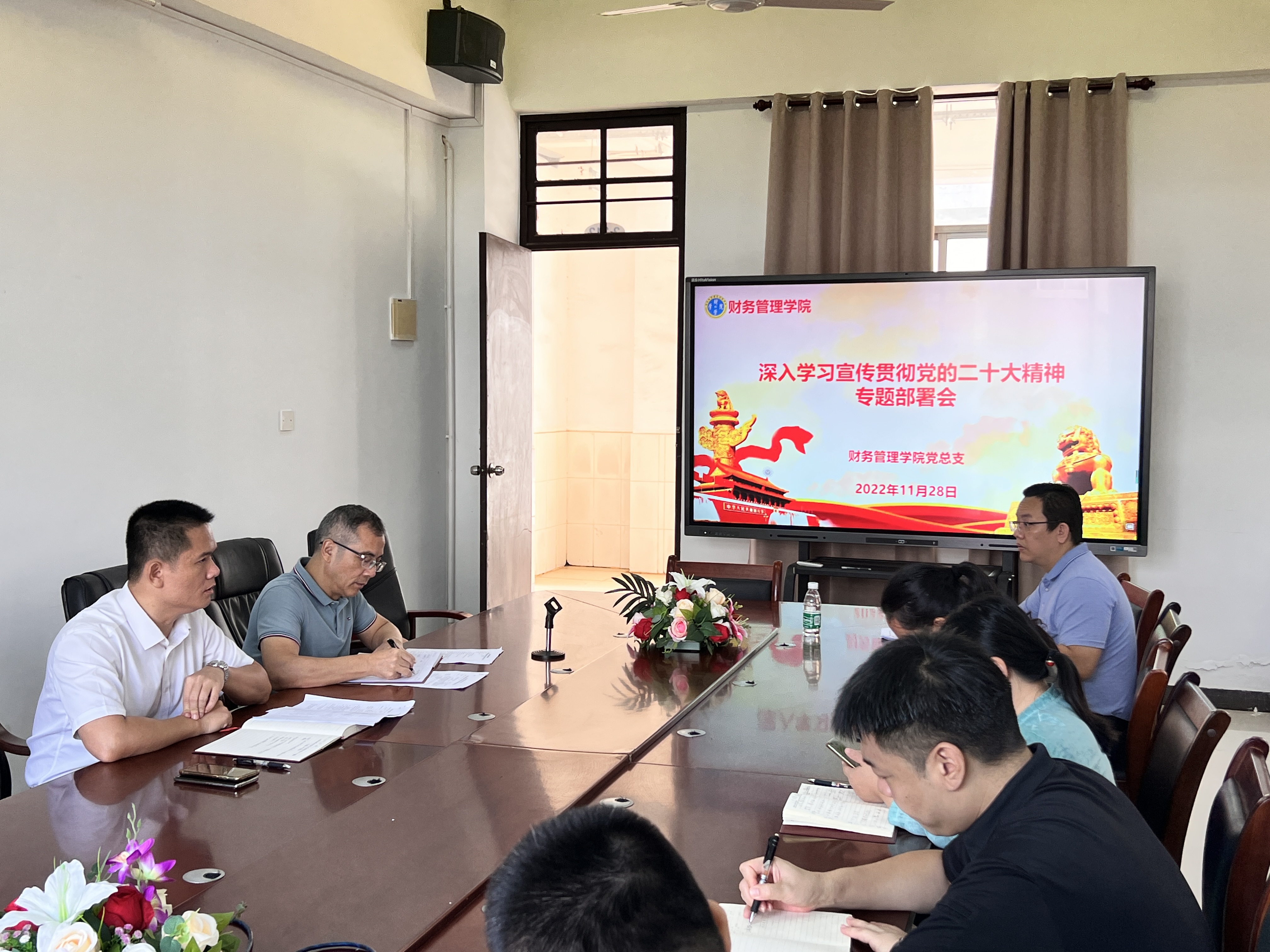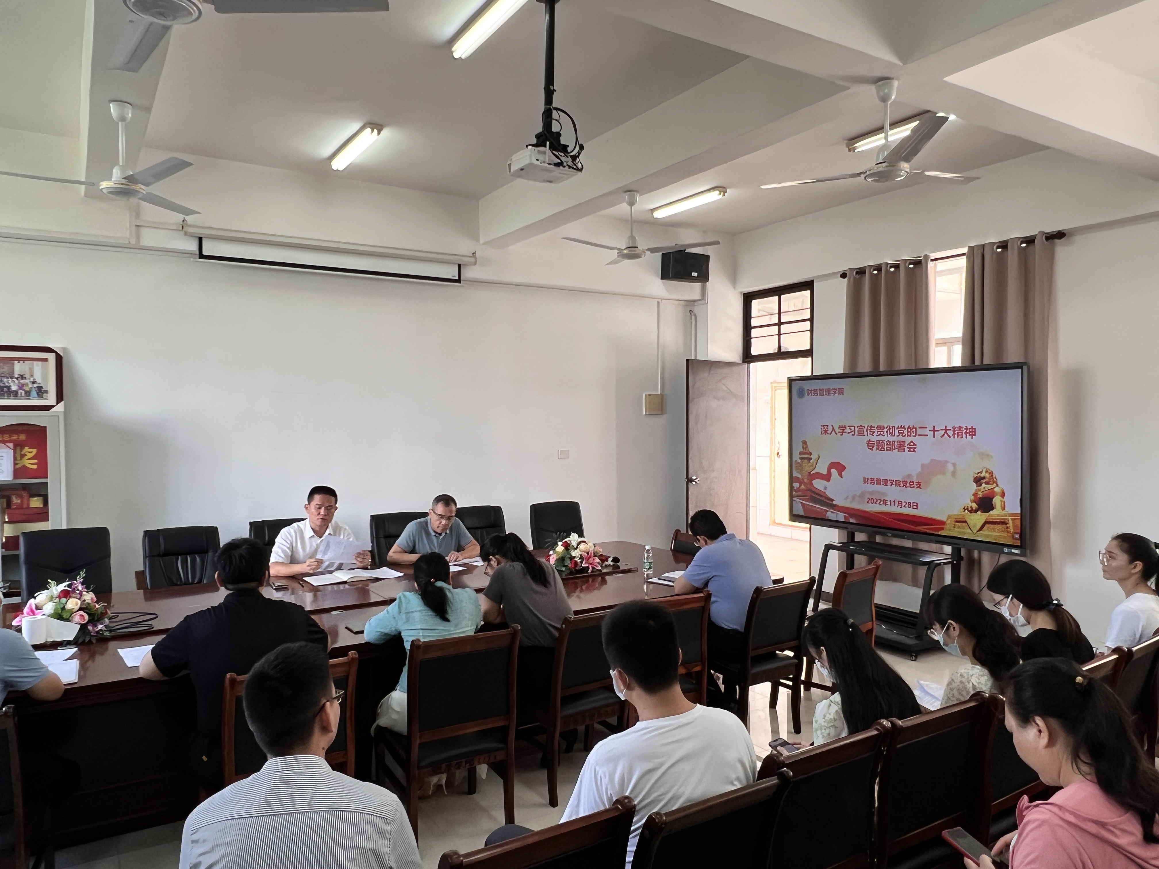 2022年11月28日上午,公司党总支书记范高智在2-312会议室召开学习宣传贯彻党的二十大精神专题工作部署会。bevictor1946韦德官网经理何忠谱,副经理林晓梅、陈君涛、马超侠、闻彦博和全体行政人员参加了部署会。