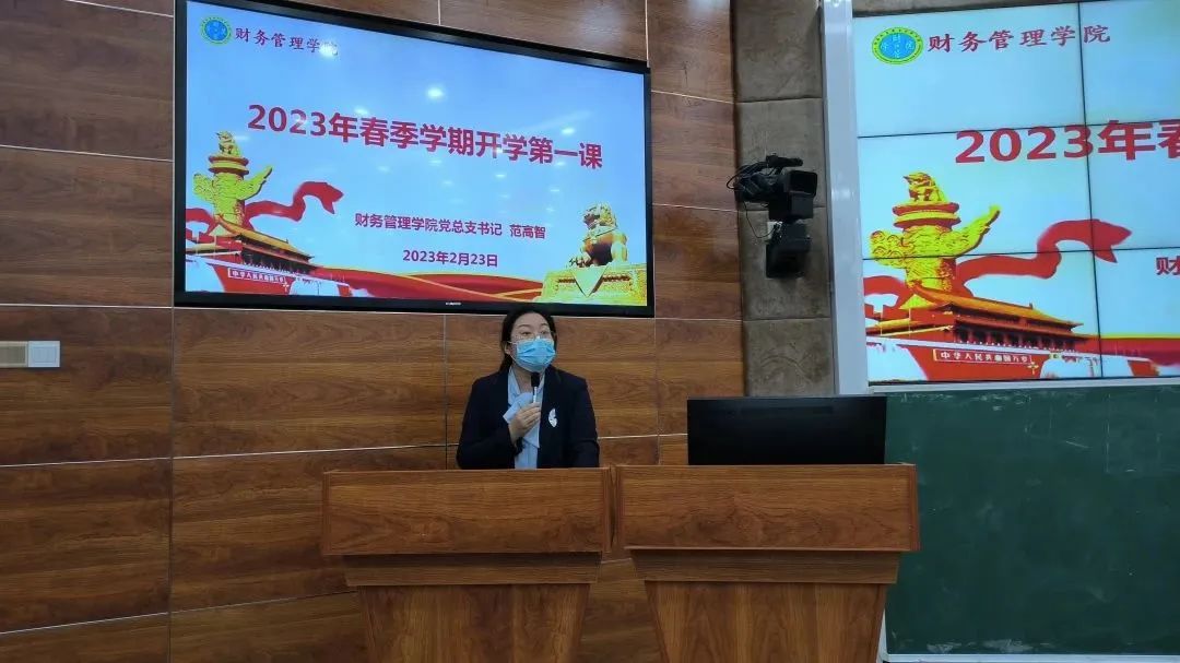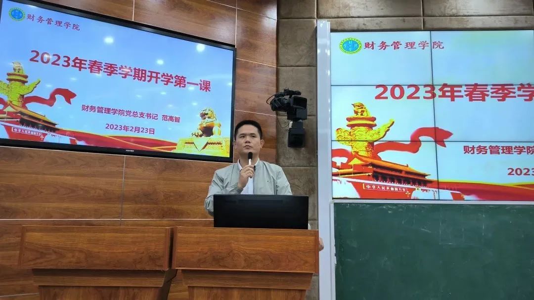 2月23日,公司党总支书记范高智在2-215教室为全院团学干部和员工代表讲授2023年春季学期开学第一课。公司党总支副书记李琰出席并主持。