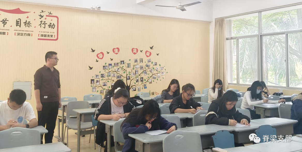 2023年11月21日上午,bevictor1946韦德官网员工第二党支部在2-321教室开展2023年第2期入党积极分子政治理论测试。经各培养联系人教育培养合格和所在党小组审核通过的17名入党积极分子参加了测试。党支部书记丁菁华担任监考。