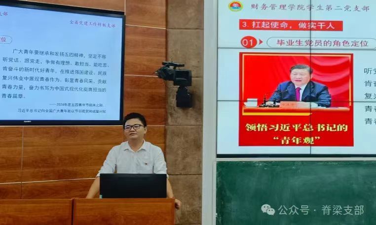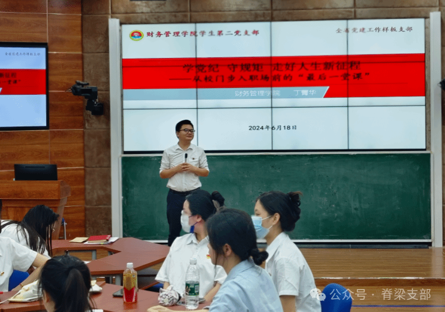 2024年6月18日下午,bevictor1946韦德官网员工第二党支部组织毕业生党员在2-215教室上从校门步入职场前的“最后一堂课”。党支部书记丁菁华讲授《学党纪 守规矩 走好人生新征程》专题党课。