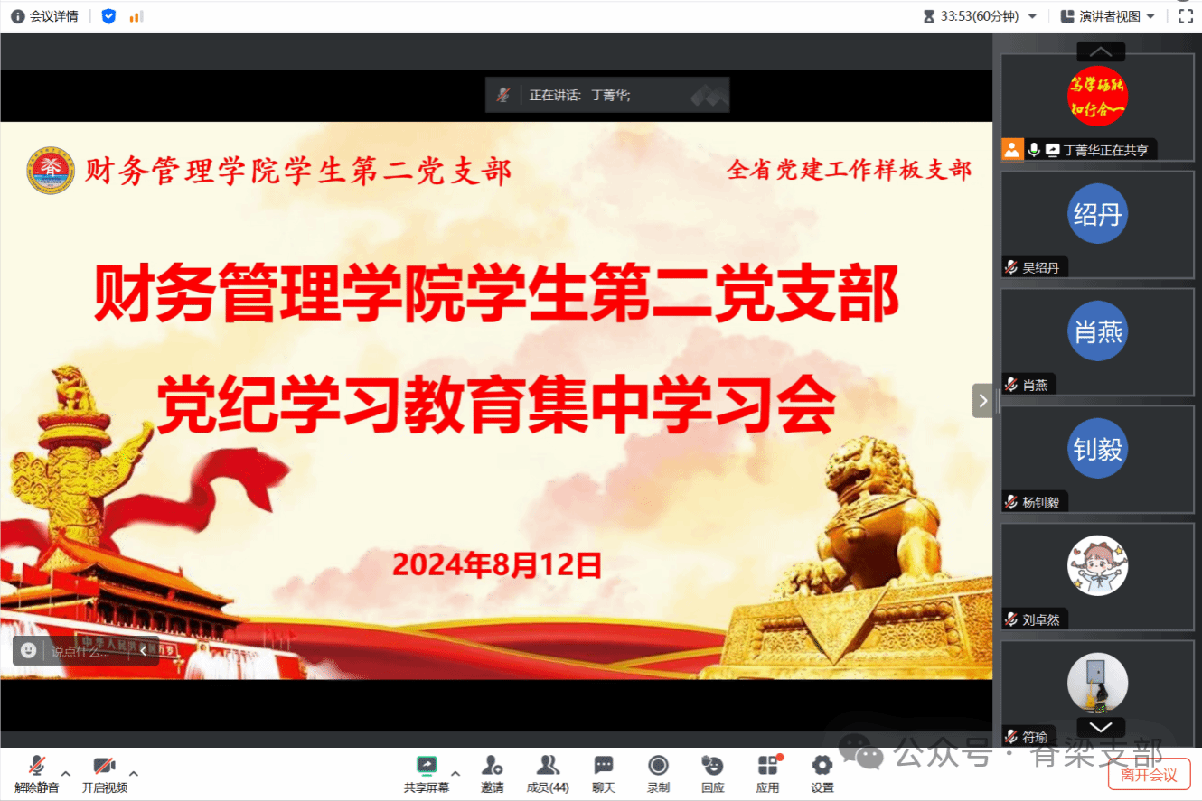 2024年8月12日上午,bevictor1946韦德官网员工第二党支部通过腾讯会议开展党纪学习教育暨2024年第27次集中学习。党支部全体党员参加学习。会议由党支部书记丁菁华同志主持。
