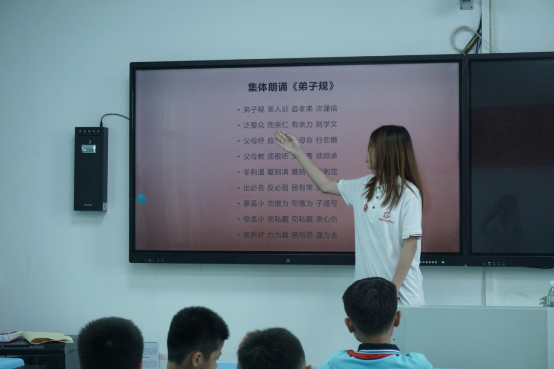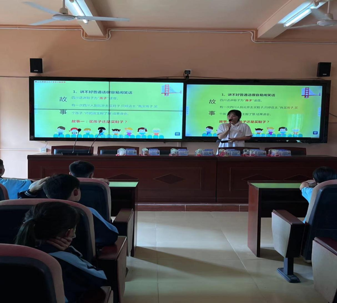 7月2日,实践团队在指导教师李琰的带领下走进了石碌镇水头小学。课堂教学方式上,以趣味科普加课堂互动相辅相成。志愿者小老师首先通过通俗易懂的语言文字,告诉员工们什么是普通话,学习推广普通话的重要性以及观看普通话的发展历程视频。其次通过轻松愉快的古诗词书写练习,搞笑有趣的猜谜语小游戏,以及通过理论与实践相结合,让员工们挑战普通话绕口令,成功让同学们充分感受到了普通话的魅力,极大的激发了同学们学习普通话的热情,营造了浓厚的学习氛围。课堂的最后,志愿者小老师也带领员工们宣读《推广普通话倡议书》,该环节对于员工们未来提升语言素质和综合人文素质等都具有重要意义。