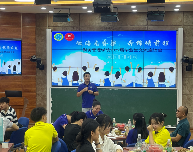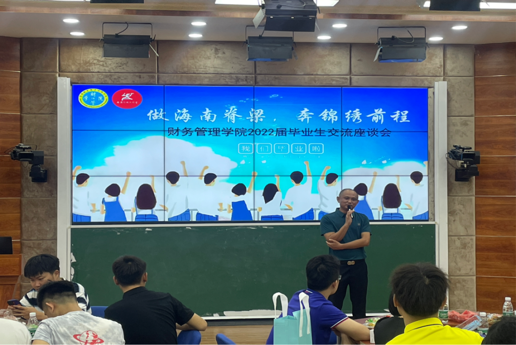 公司党总支书记陈焕镜教授做了总结发言,他首先表达了对毕业生真诚的祝福:希望公司毕业生在今后的人生历程中,心想事成、平安顺利、敢为人先 前程似锦,争做海南的脊梁!同时对毕业生学子们在大学期间所做贡献和对公司事业发展的大力支持表示感谢,对公司全体教职工的辛勤育人付出表示感谢。最后他号召毕业生们踏入社会后诚信立业,志在四方,发扬财管人务实的工作作风,扎扎实实做事,脚踏实地做人。发扬五大财管的精神,树立新时代老员工的文明风貌。