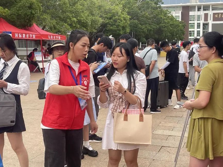 他们身穿“红马甲”穿梭在校园里的各个角落,成为了校园里一抹亮丽的风景线,始终坚持在自己的工作岗位上,尽心尽力地为新生搬运行李、引路、耐心解答“小萌新们”的疑惑,为新生做好榜样。