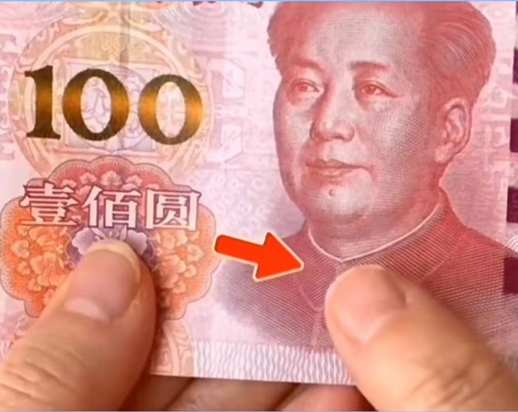 (1)用手触摸毛爷爷头像的衣领可以明显感觉到凹凸粗糙感。