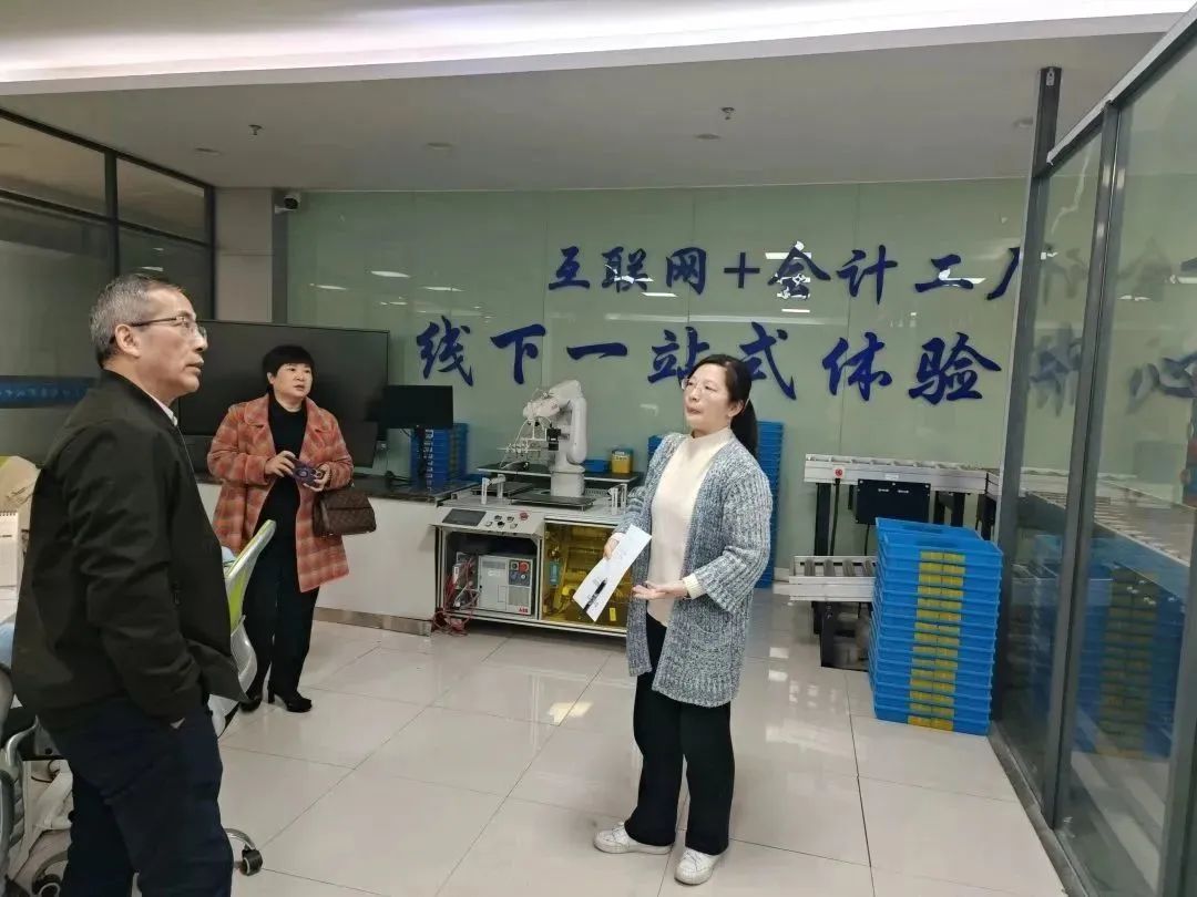 座谈会结束后,江苏经贸大数据与会计教研室主任黄莉娟、大数据与审计教研室主任张蕊陪同何忠谱经理一行参观了会计与审计公司实训室和产业公司建设的具体情况,介绍了云帐房产业公司、财政厅标准化考场、技能大赛训练室和校企合作创新课程开发情况,演示了云帐房产业公司的运行情况。