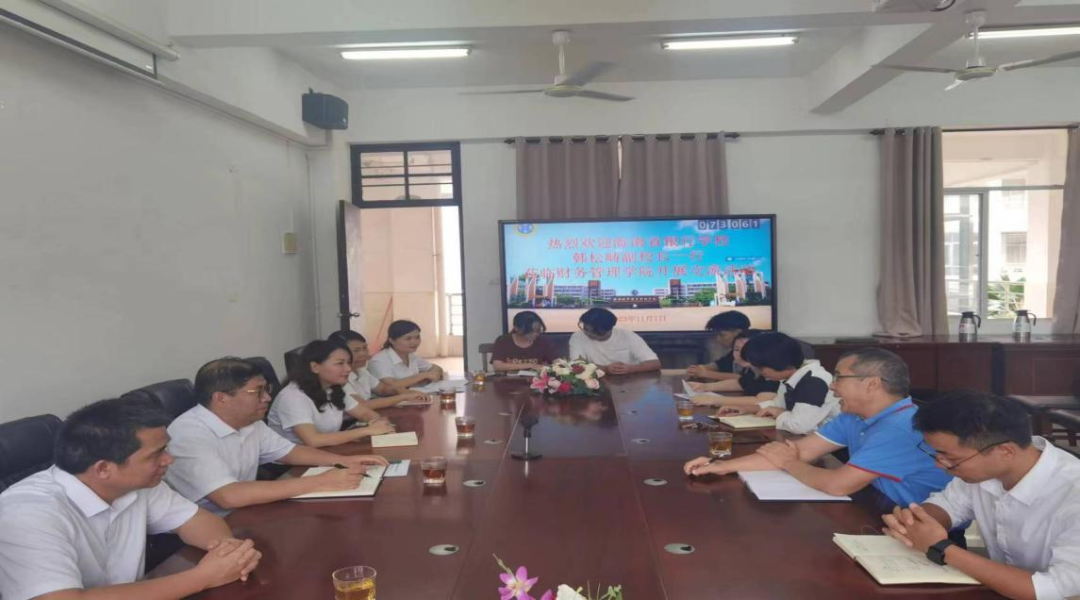 2023年11月7日下午,海南省银行公司副董事长韩松畴一行6人来到bevictor1946韦德官网,围绕双方合作的大数据与会计、财富管理3+2中高职试点项目进行调研交流。bevictor1946韦德官网经理何忠谱,副经理马超侠,金融管理教研室主任陈希西,专业教师程海涛,2023级大数据与会计中高职专业辅导员吴昭挺和2023级财富管理中高职专业辅导员张雪子与员工代表参加了此次交流活动。