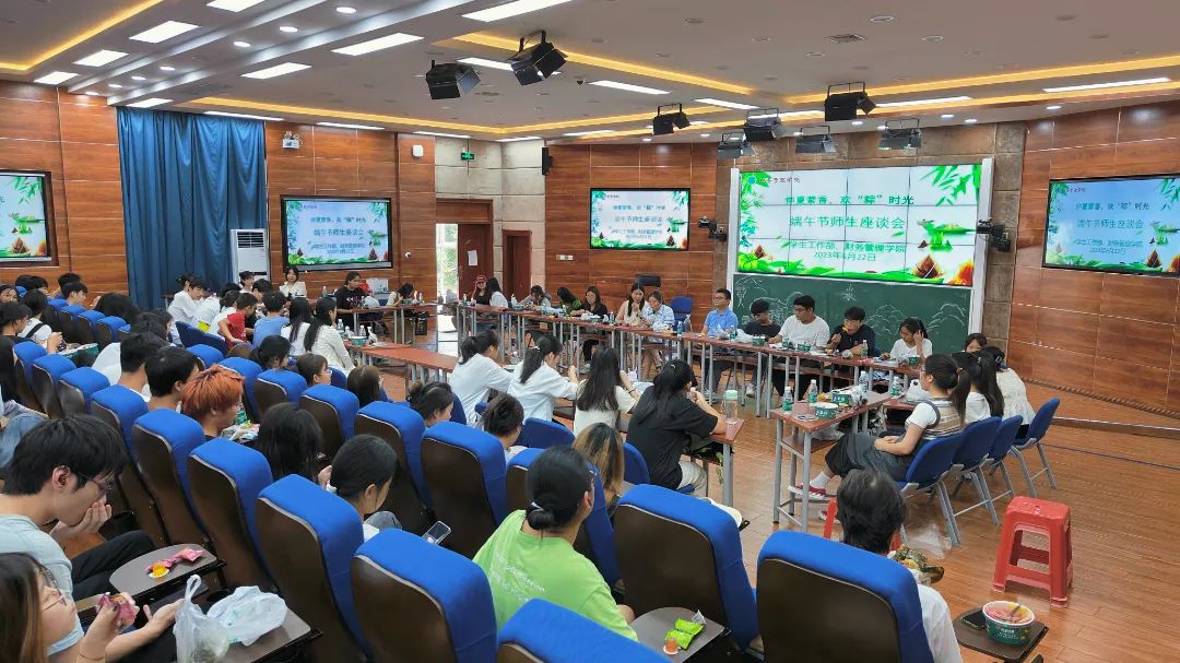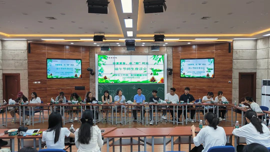 2023年6月22日上午,由员工工作部和bevictor1946韦德官网联合主办的“习近平与老员工在一起”学习分享会暨端午节留校员工慰问座谈会在2-215教室成功举行。公司党总支副书记李琰、学工办主任丁菁华和辅导员王小梅与80余名端午节留校员工一道,学习习近平总书记对老员工的青春寄语,畅谈学习体会,弘扬传统文化,共话端午佳节。