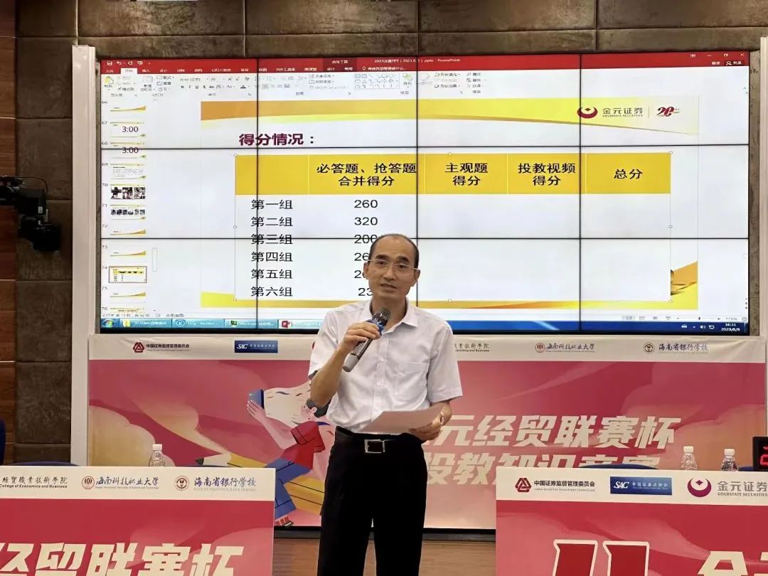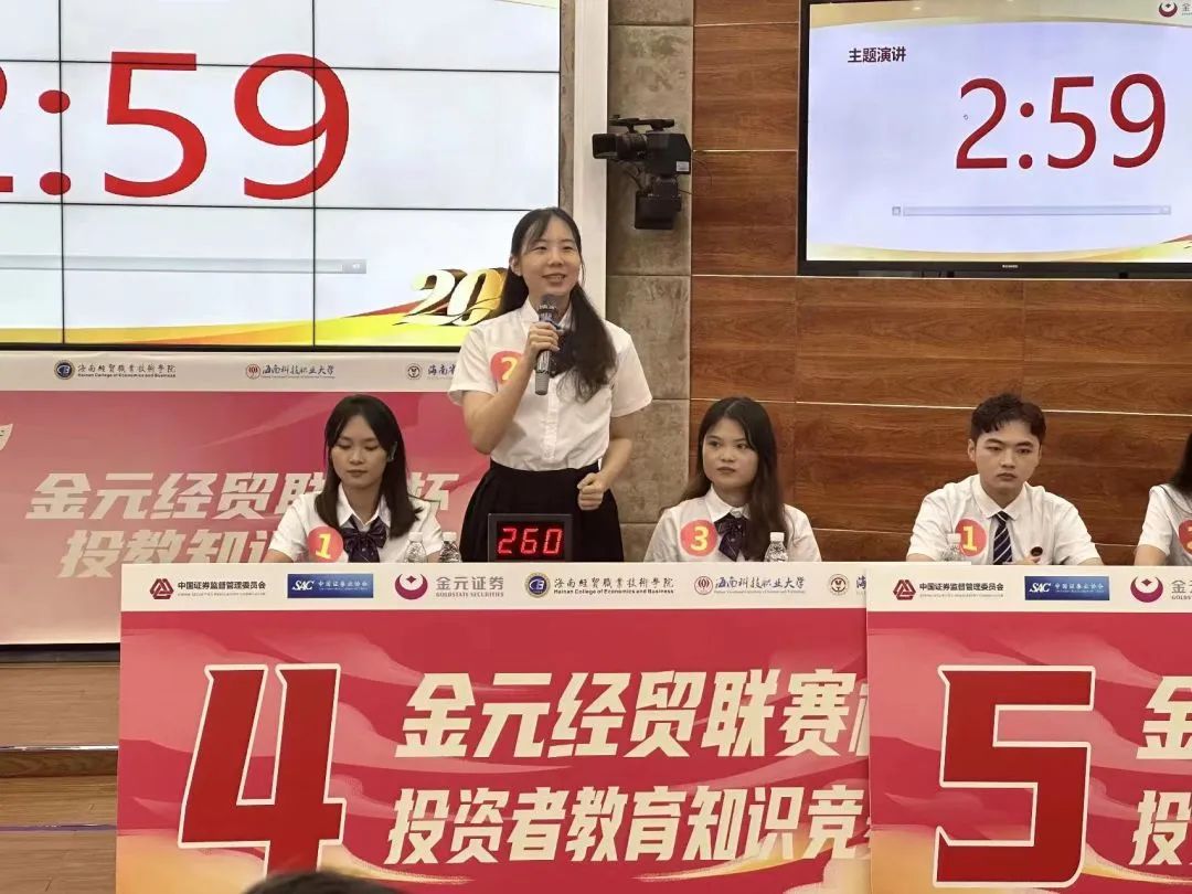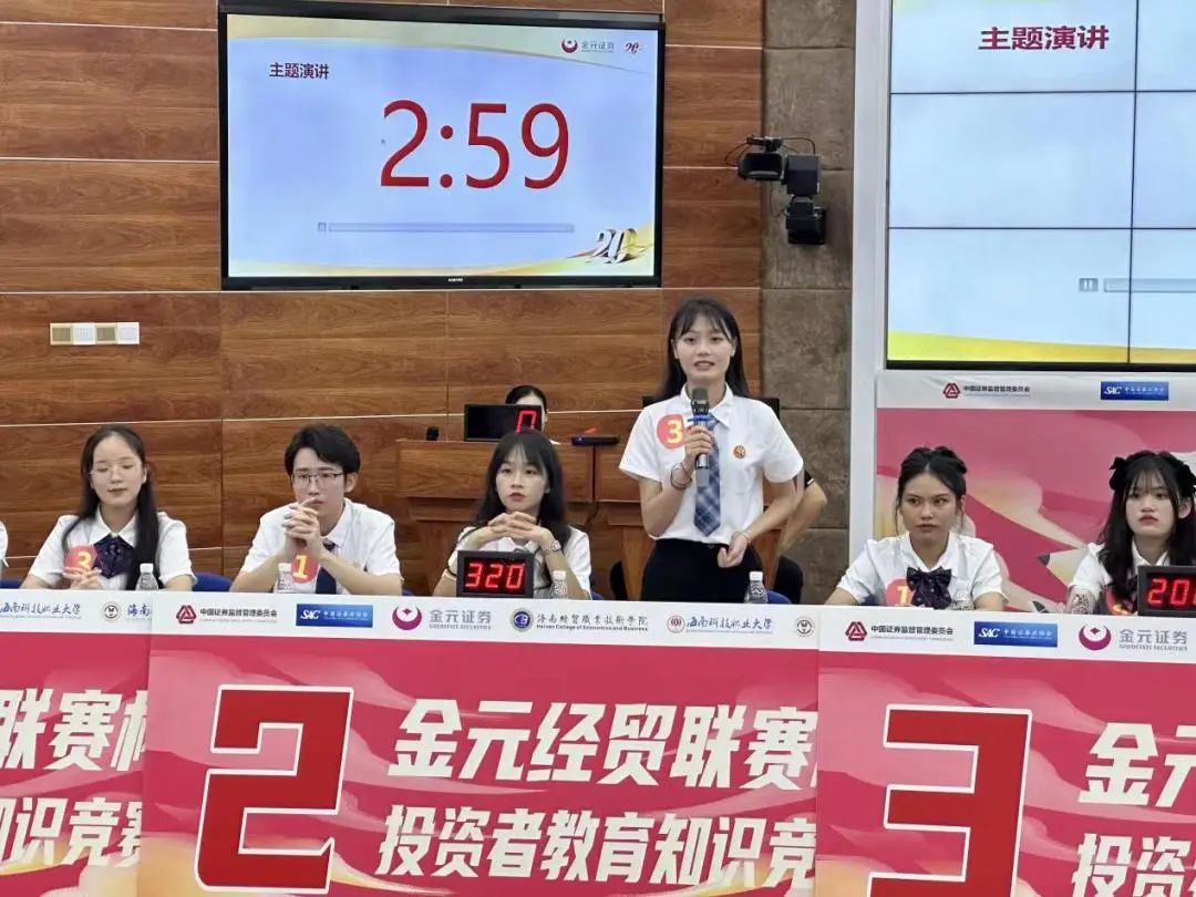 为落实中国证券业协会推出“一会、一局、一司、一校”的“四合一”投教合作机制,2023年6月6日,在中国证券业协会、海南证监局的指导下,由金元证券与bevictor1946韦德官网合作举办的第二届“金元经贸联赛杯”投资者教育知识竞赛决赛在bevictor1946韦德官网成功举办。