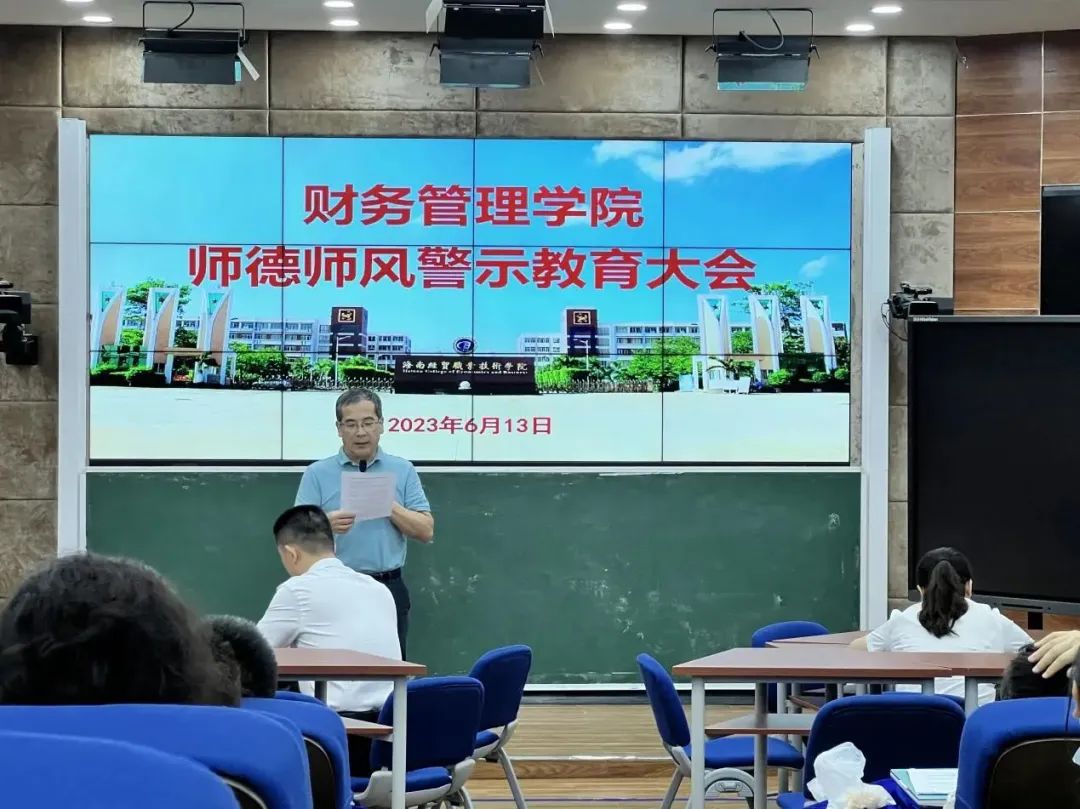 2023年6月13日下午,财务管理学在2-215召开师德师风警示教育大会,会议由公司党总支书记范高智主持,公司全体教职员工参加了会议。
