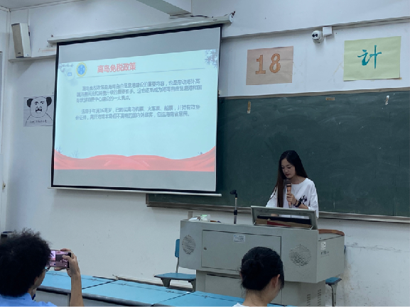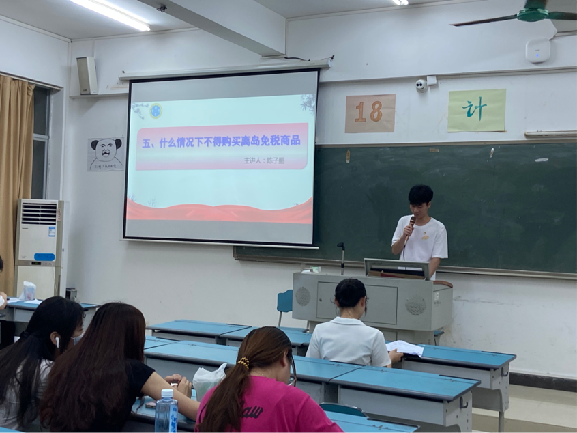 宣讲团用案例加视频的方式向同学们讲解了“套代购”走私的后果以及所应承担的责任,告诫同学们要提高防范意识,远离“套代购”,切勿以身试法,坚守个人底线,为海南自贸港建设打下基础。