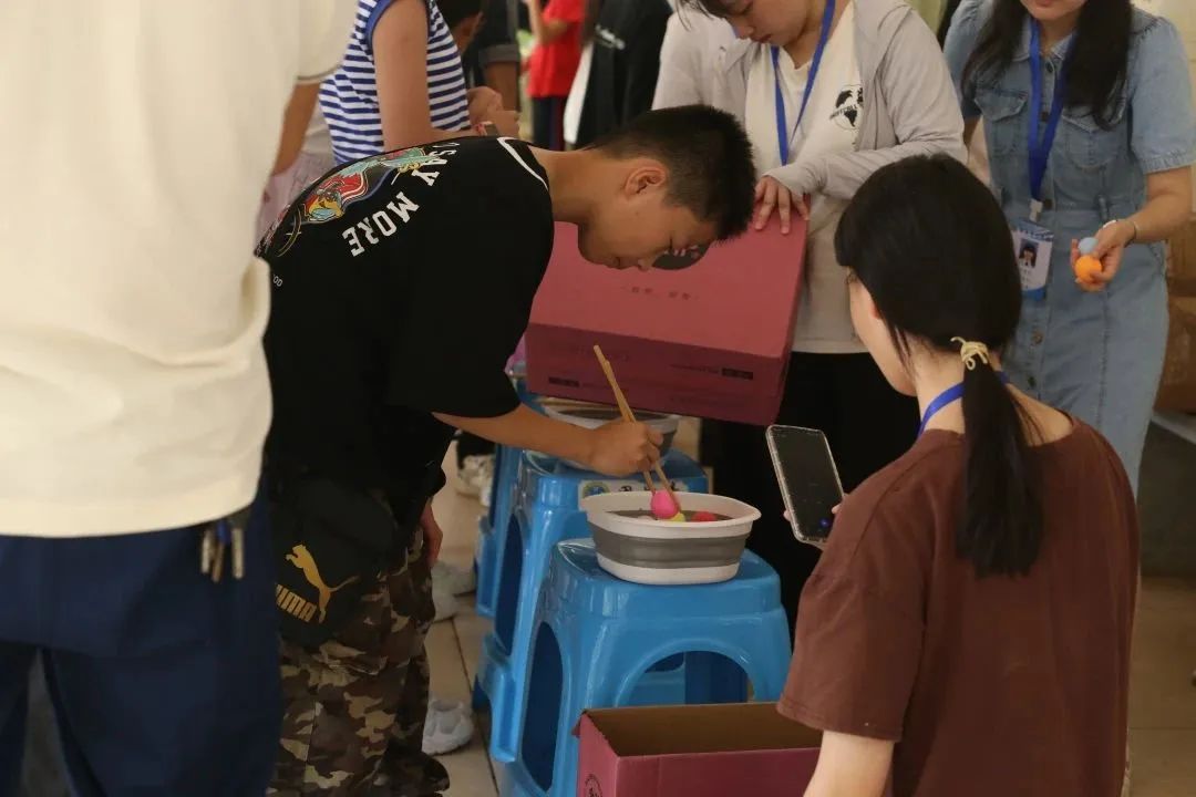 下午准备了游园式的室外游戏。游戏内容有吹气运球、前“呼”后继、电臀达人、套圈、夹兵乓球、丢沙包进坑等集体游戏或单人竞技游戏,集趣味性、益智力、团队合作能力于一体,考验了孩子的动手技巧、参与活动的勇气,让孩子们在游戏中得到综合能力的培训与提升。其中,套圈活动更是吸引了大批的小朋友来参与,排队从开始到结束从未中断。