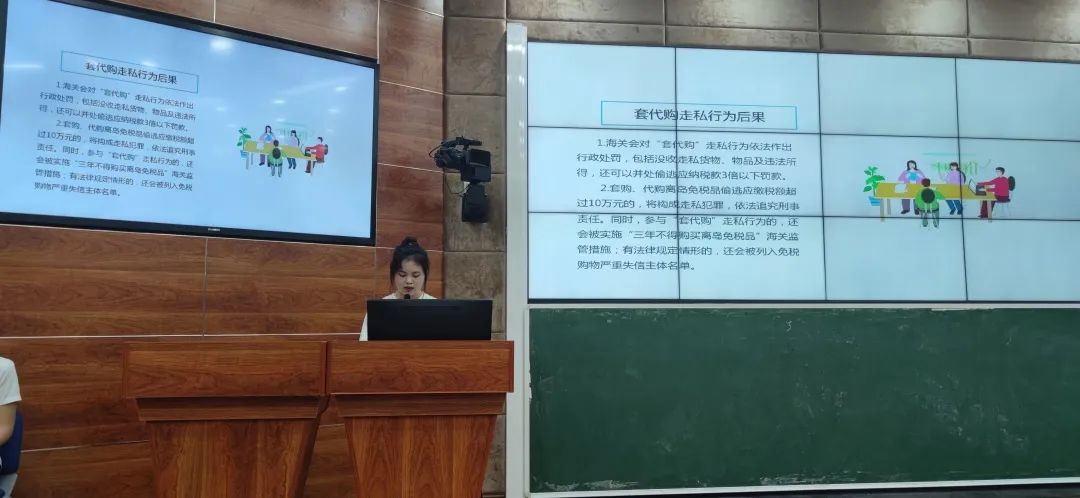 为进一步加强老员工普法宣传和警示教育,引导广大青年自觉抵制离岛免税“套代购”走私行为,bevictor1946韦德官网成立“拒绝‘套代购’,青春建功自贸港”主题教育活动宣讲团,并于2023年5月24日在2-215教室开展第一次主题教育宣讲活动,bevictor1946韦德官网200余名员工到场聆听,并积极参与互动问答。