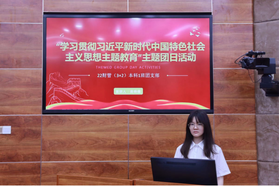 22级财管(3+2)本科班1班团支书吴晓倩在发言中说到,调查研究是谋事之基、成事之道。习近平总书记关于调查研究的重要论述,是习近平新时代中国特色社会主义思想的重要内容和有机组成部分,蕴含着人民至上、守正创新、问题导向、系统思维的思想方法和工作方法,为我们认识问题、分析问题、解决问题提供了科学的方法论指导。