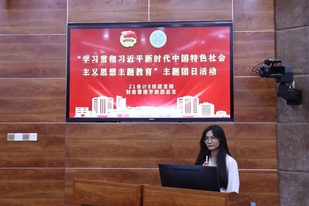 21会计8班的团支书王欣如在发言中说,习近平新时代中国特色社会主义思想倡导培育和践行社会主义核心价值观,弘扬中华民族传统美德,构筑起中国精神、中国价值、中国力量,巩固了全党全国各族人民团结奋斗的共同思想基础。习近平新时代中国特色社会主义思想延续历史文脉,坚定文化自信,强调推动中华文明创造性转化和创新性发展,激活其生命力,让中华文明同世界各国人民创造的丰富多彩的文明一道,为人类发展进步提供正确的精神指引和强大的精神动力。