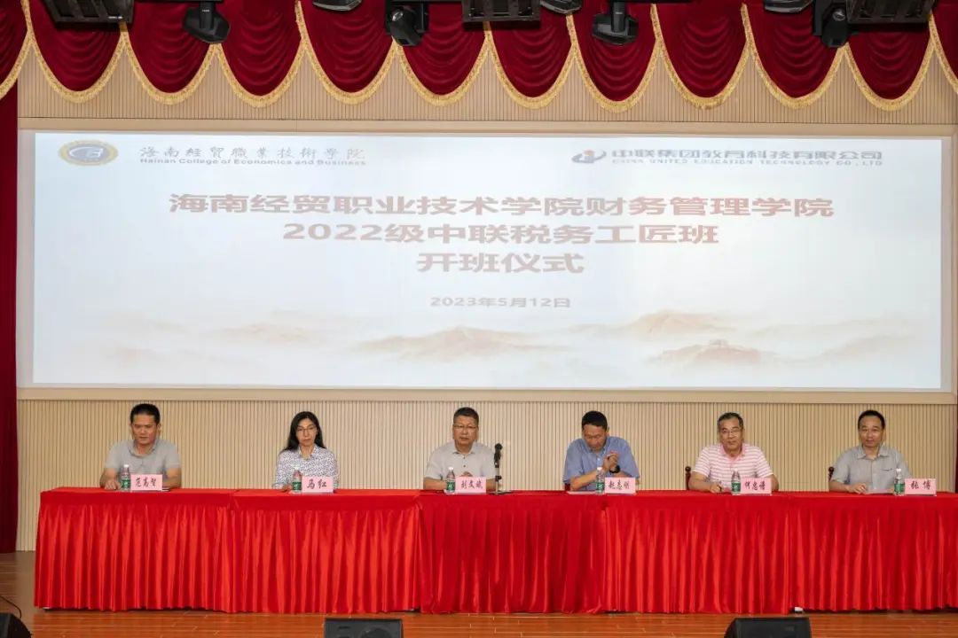 2023年5月12日下午,公司与中联集团教育科技有限公司携手打造的2022级中联财税工匠班开班仪式在图书馆二楼学术报告厅举行。2022级中联财税实验班是在前期合作的基础上,公司与中联集团联手以携手共建的智慧财经产业公司为框架,招收的第一届现代学徒制员工。海南经贸职业技术公司党委委员、副经理刘文斌出席开班仪式并致辞,教务处副处长马红,bevictor1946韦德官网经理何忠谱,党总支书记范高智,副经理陈君涛、马超侠、闻彦博,中联集团教育科技有限公司副总裁赵志刚、海南区域总经理张博和2022级中联财税实验班全体同学出席开班仪式。开班仪式由闻彦博主持。