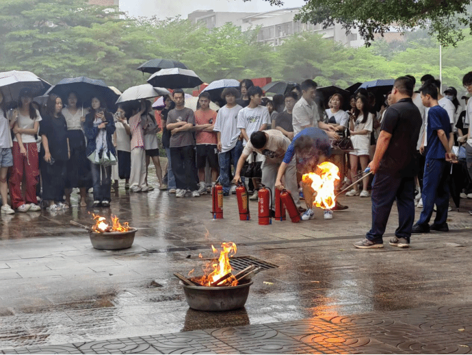 培训结束后,公司在经贸广场(图书馆门口)进行消防安全的实际操作演练,财管师生踊跃参加。
