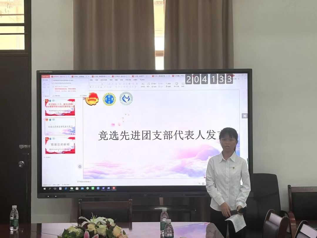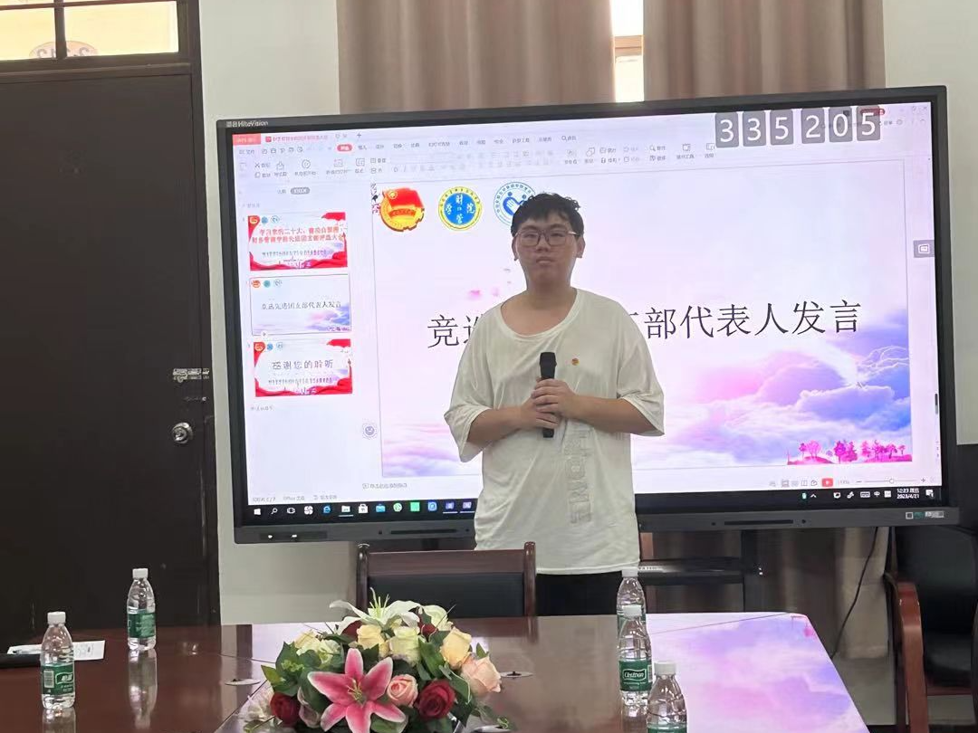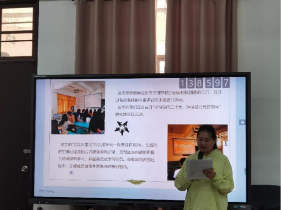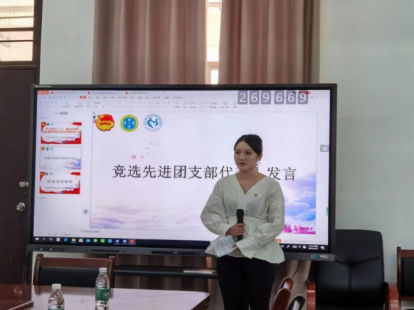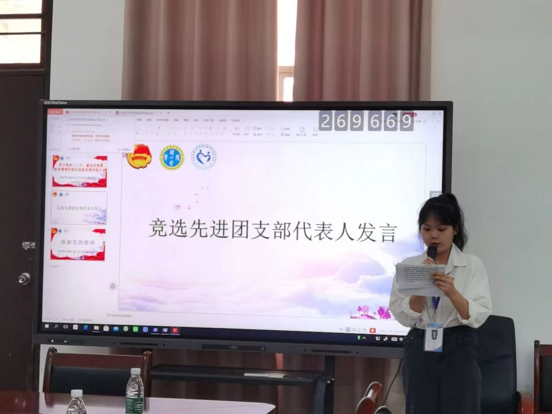 大会开始,各团支部代表依次上台发言。每一位团支部代表向评审小组展示本次评选先进团支部的准备成果。