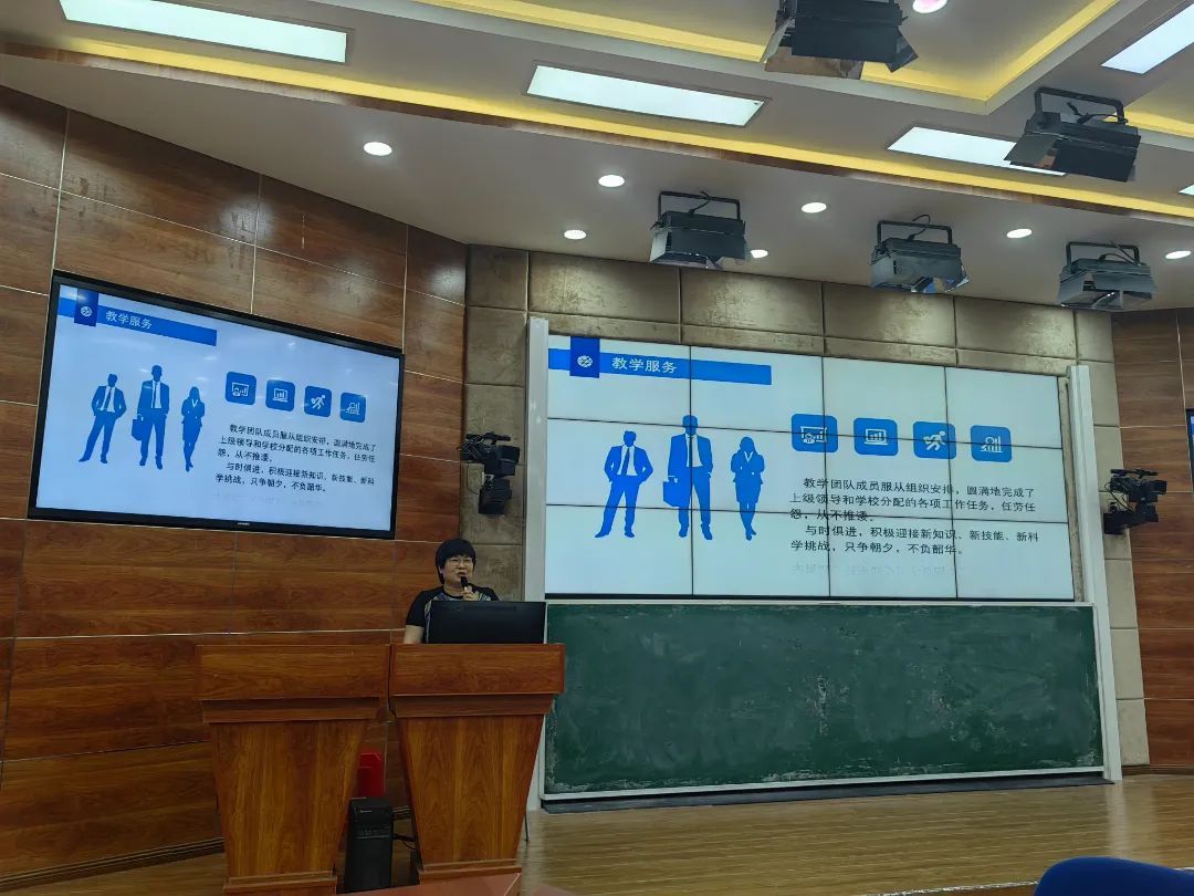 陈希西、林素敏、李盛林、吴灵均、王叶、马志坚六名专业负责人对各专业2023年度工作进行述职报告,分别从成绩清单、问题清单、计划清单等方面对本专业教师做出的工作成果进行汇报。