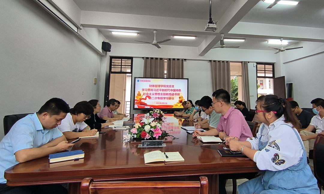李琰领学《习近平新时代中国特色社会主义思想专题摘编》第三章坚定不移高举中国特色社会主义伟大旗帜。她说,旗帜就是方向,旗帜就是形象,旗帜决定命运。要坚定不移高举中国特色社会主义伟大旗帜,牢固树立中国特色社会主义道路自信、理论自信、制度自信、文化自信,落实立德树人根本任务。一是全体财管人要满怀干事创业的热情,齐心协力完成“双高”建设和创办职业本科的各项工作。二是要开创财管工作新局面,加强一院一品建设,构建服务育人体系。三是要勇于创新,推进理论创新和实践创新,变革工作方式方法,提升工作效能。四是要落实艰苦奋斗精神,推动改革攻坚任务的高质量完成。五是要坚定不移听党话跟党走,贯彻落实好上级党委的工作部署,不折不扣开展好主题教育。