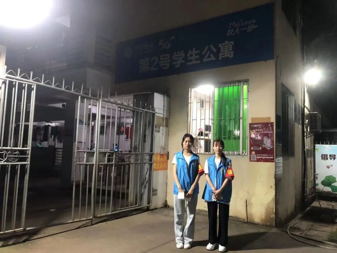 当天晚上十点半由志愿者在各宿舍楼下登记晚归情况。