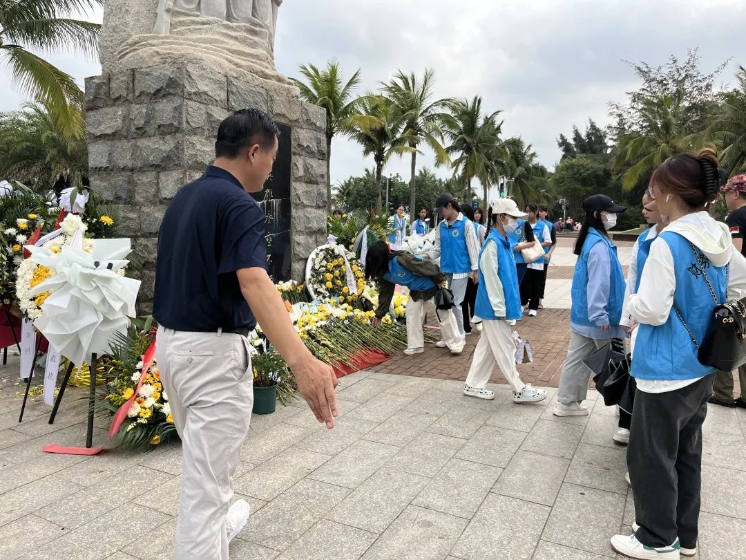 随后,在老兵同志的带领下,同学们来到渡海英雄纪念碑,给英雄献花。一束花,代表着我们对革命先烈的无尽哀思。他们为了解放海南岛抛头颅、洒热血。没有他们,就没有我们美好的生活。他们永远活在我们心中!