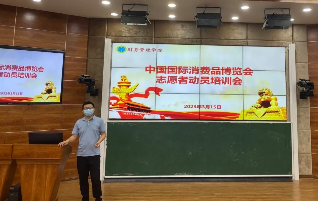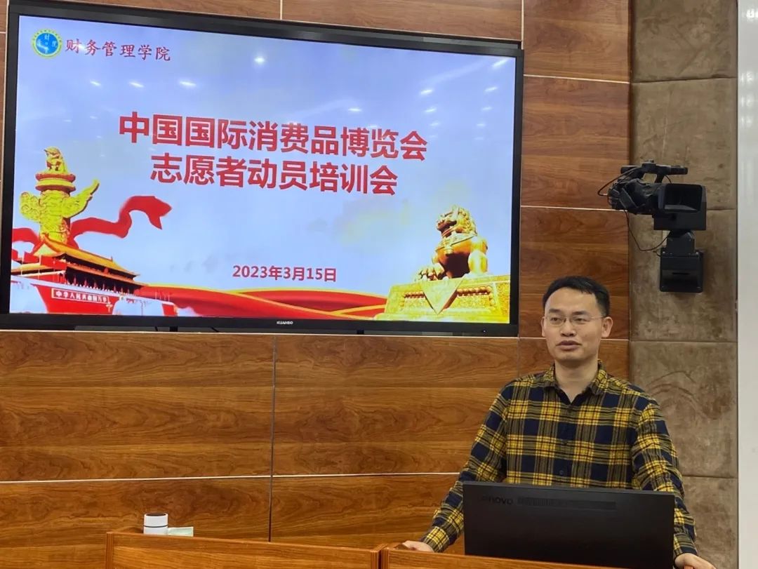 2023年3月15日中午,bevictor1946韦德官网在2-215召开中国国际消费品博览会志愿者动员培训会。公司党总支书记范高智,学工办负责人丁菁华,辅导员吴昭挺及员工代表参加了本次培训会。