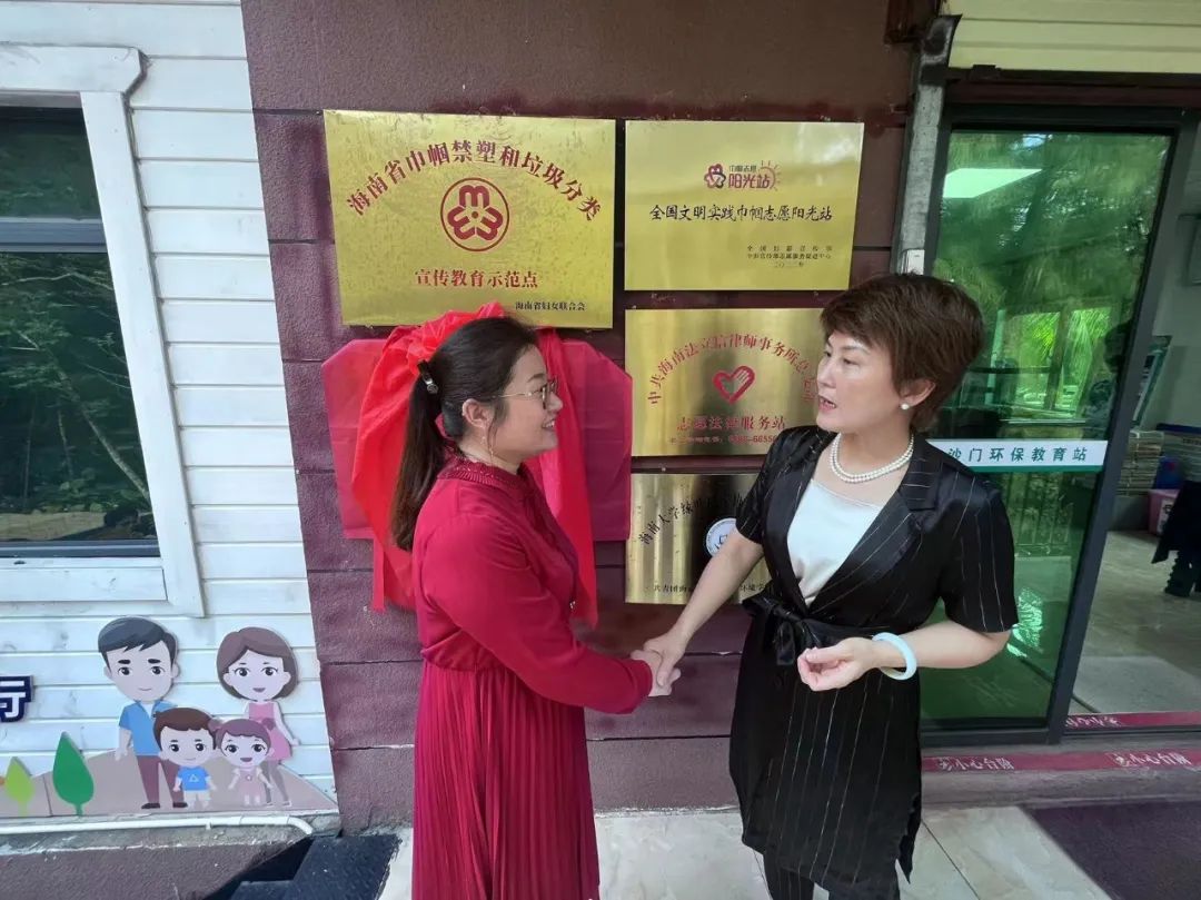 在环保教育站,李琰副书记邀请中国妇女报社党委书记、社长、总编辑孙钱斌,海南省妇女联合会党组书记、主席陈健娇为老员工社会实践基地揭牌。