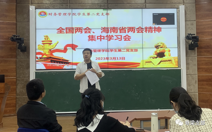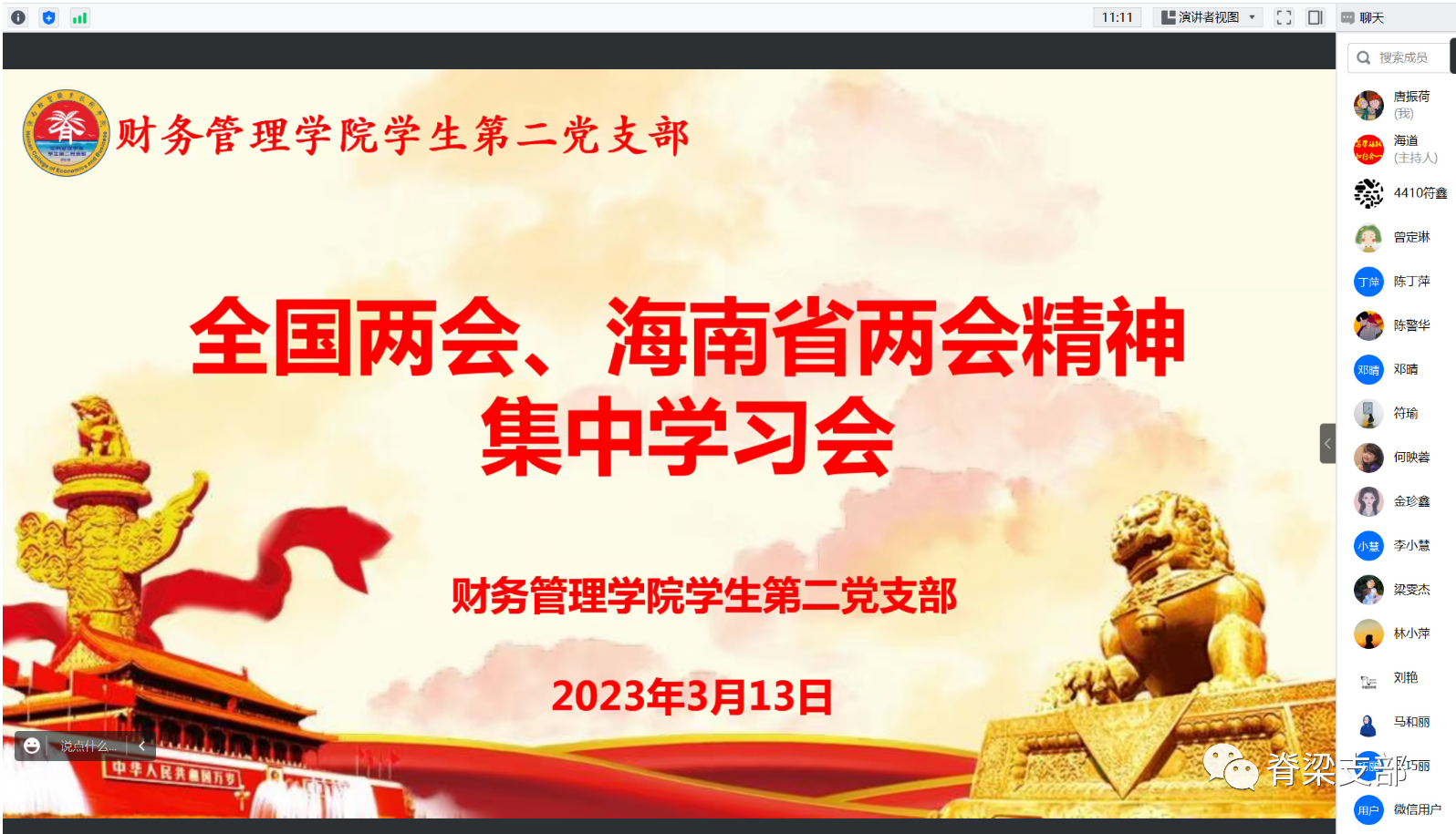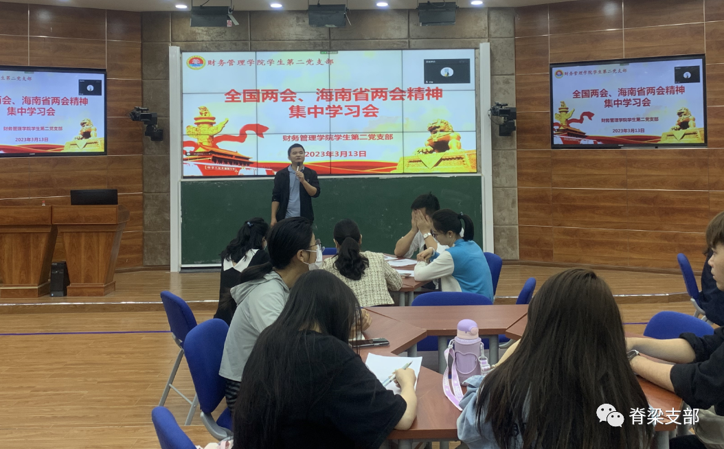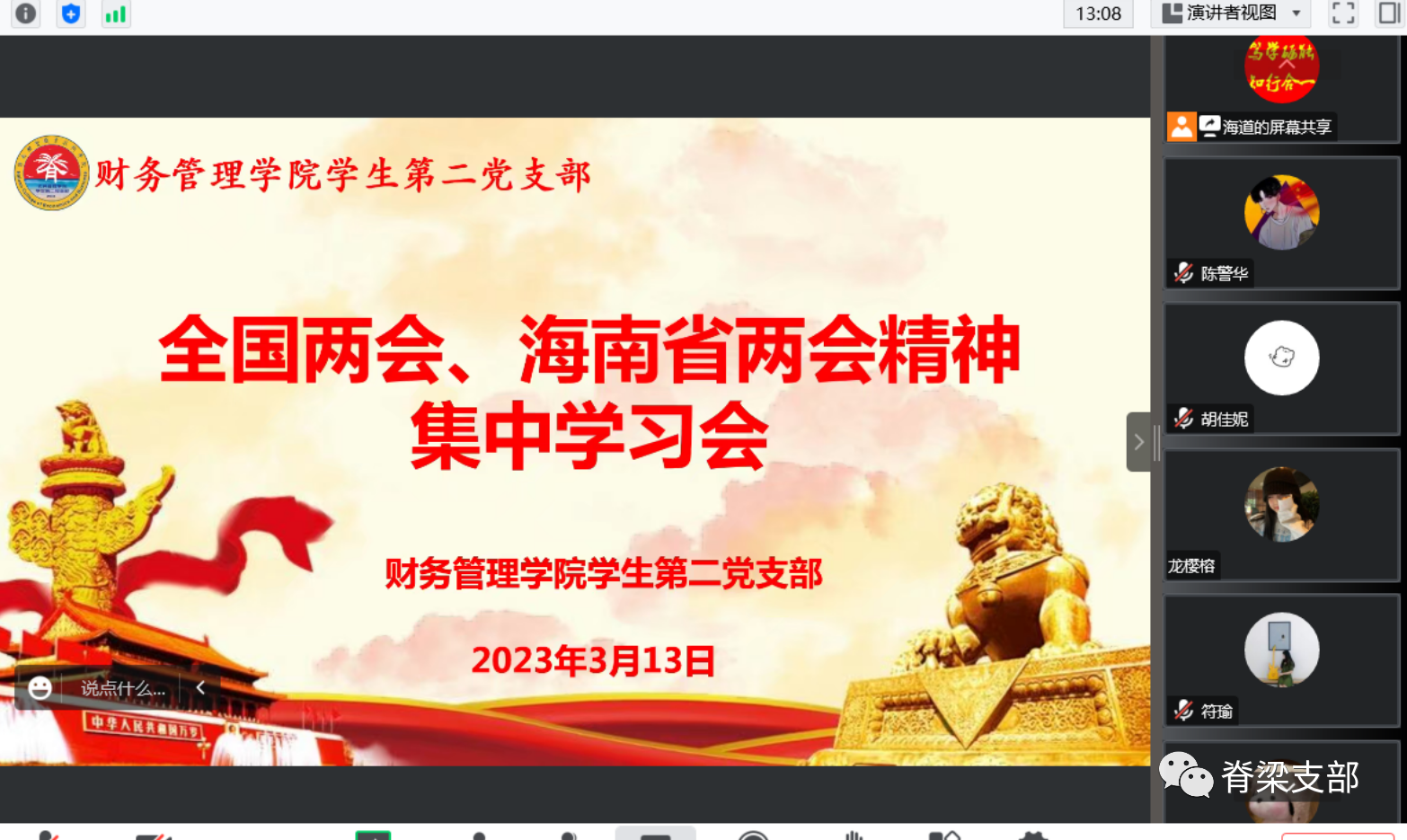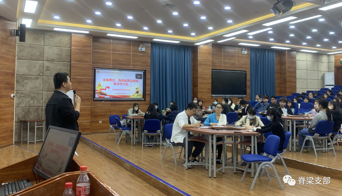 2023年3月13日上午,bevictor1946韦德官网员工第二党支部召开学习会,集中学习全国两会精神、习近平主席在十四届全国人大一次会议上发表的重要讲话和海南省两会精神。学习会由党支部书记丁菁华主持。