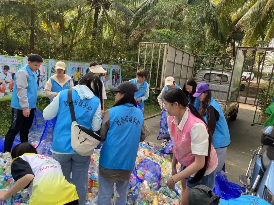 通过王阿姨的讲解,志愿服务队了解了相关的垃圾分类文化,于是加入了垃圾分类的行动中,实践了塑料瓶的分拣工作。