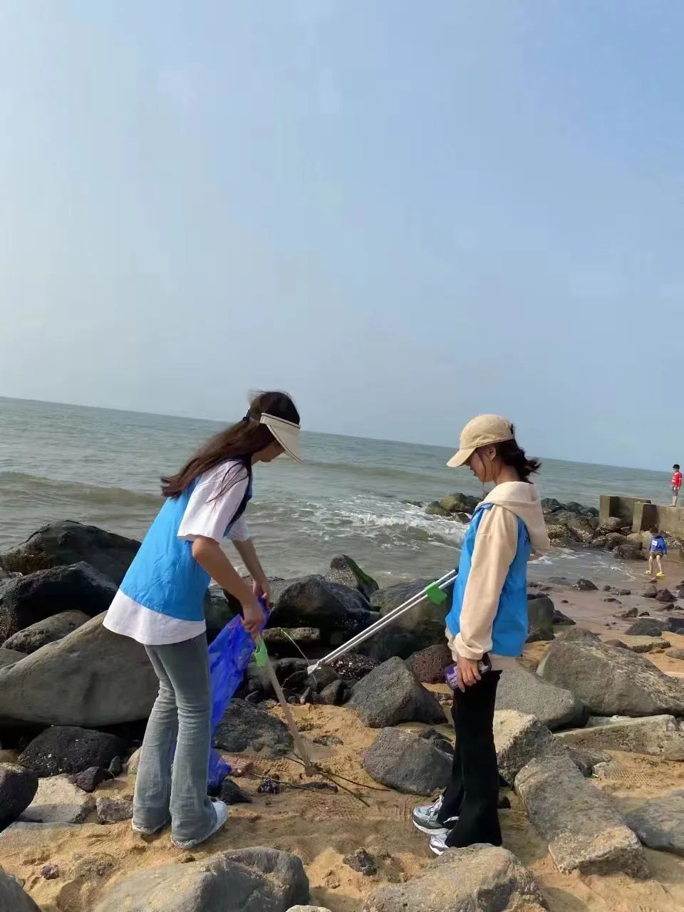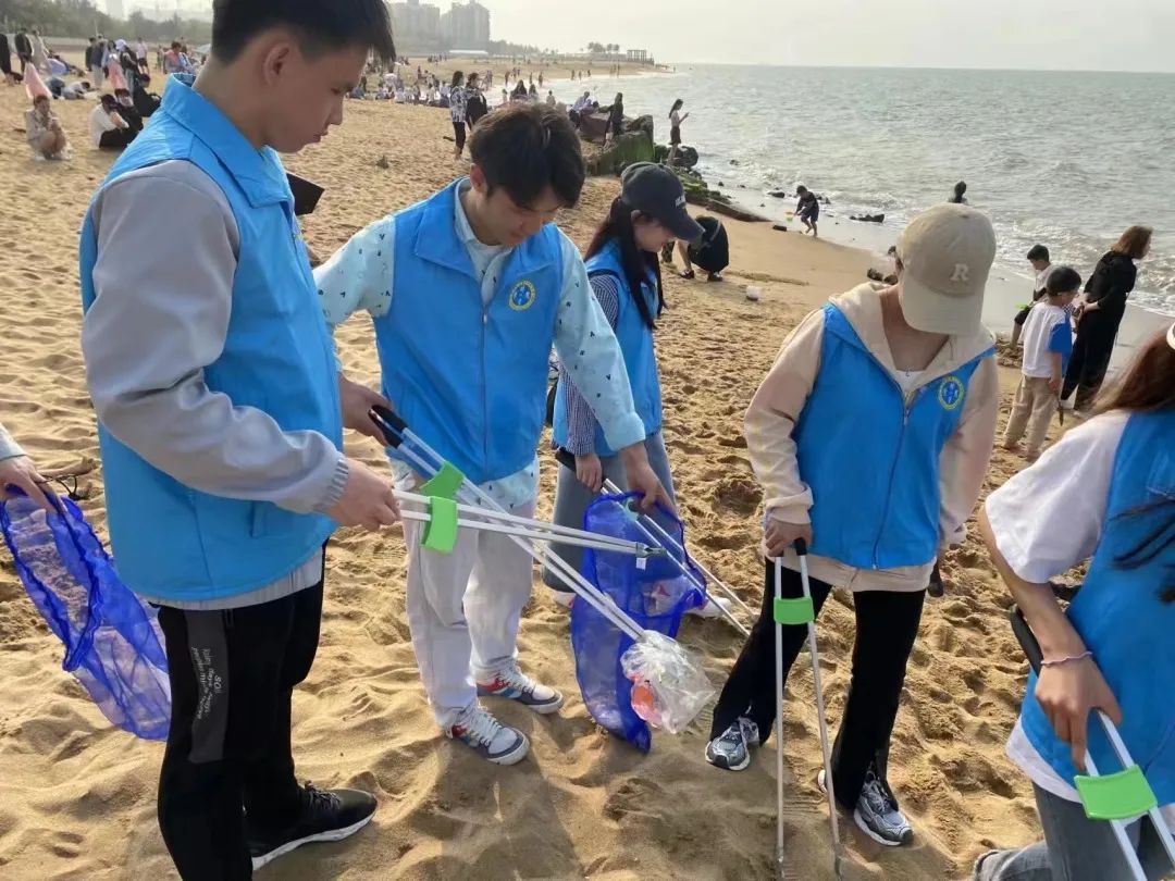 在做完垃圾分拣工作后,我们又投入到了海边净滩活动,充分发挥不怕脏、不怕累的精神,互相配合、见“垃”行事、穿上蓝马甲、拿上垃圾钳、拎上垃圾袋,开干!