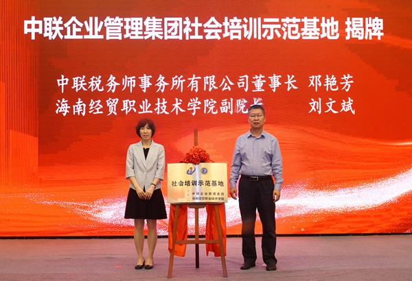邓艳芳、刘文斌为海经贸中联企业管理集团社会培训基地揭牌