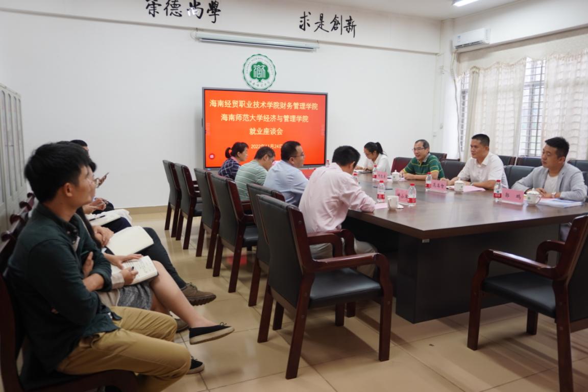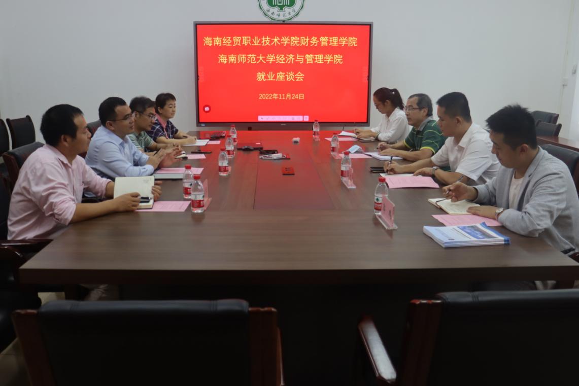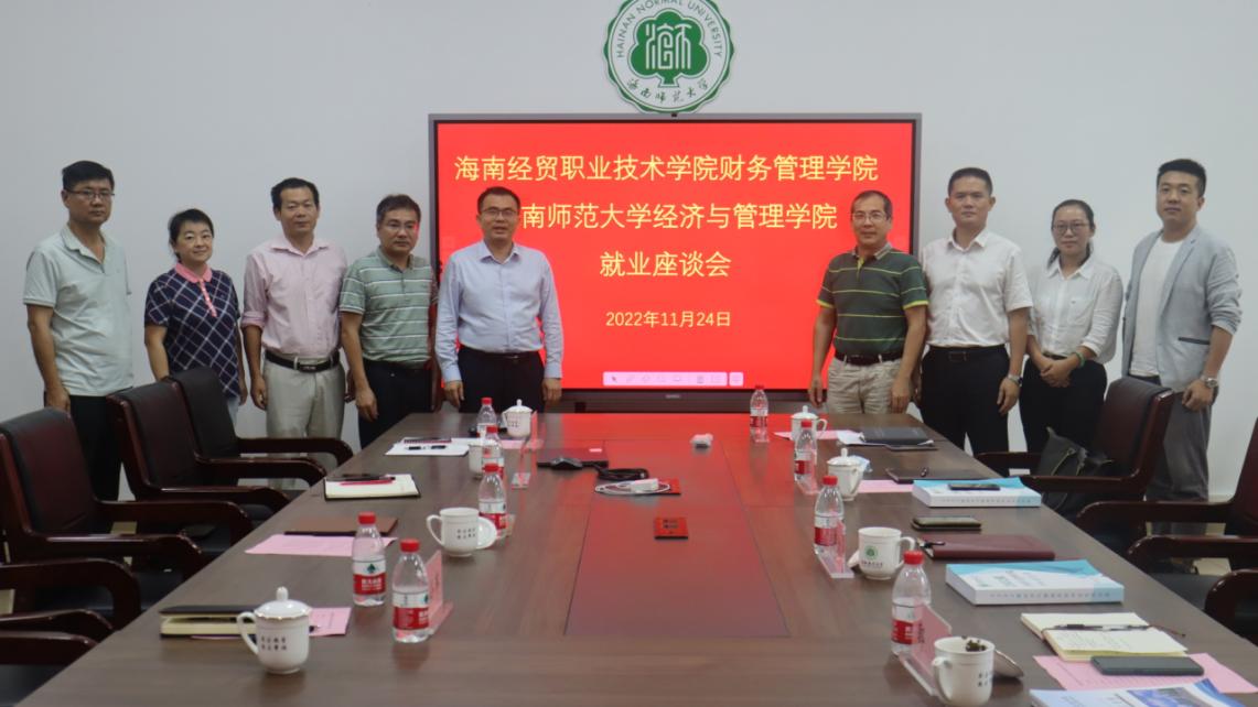 2022年11月25日下午,公司何忠谱经理、范高智书记、马超侠副经理和郭鹏老师,一行前往海南师范大学经济与管理公司开展本科毕业生就业工作交流。海南师范大学经济与管理公司经理陈江、副书记王承毅、副经理甘小军、副经理叶成徽、学工负责人李佳佳以及学工全体老师参加了座谈交流。