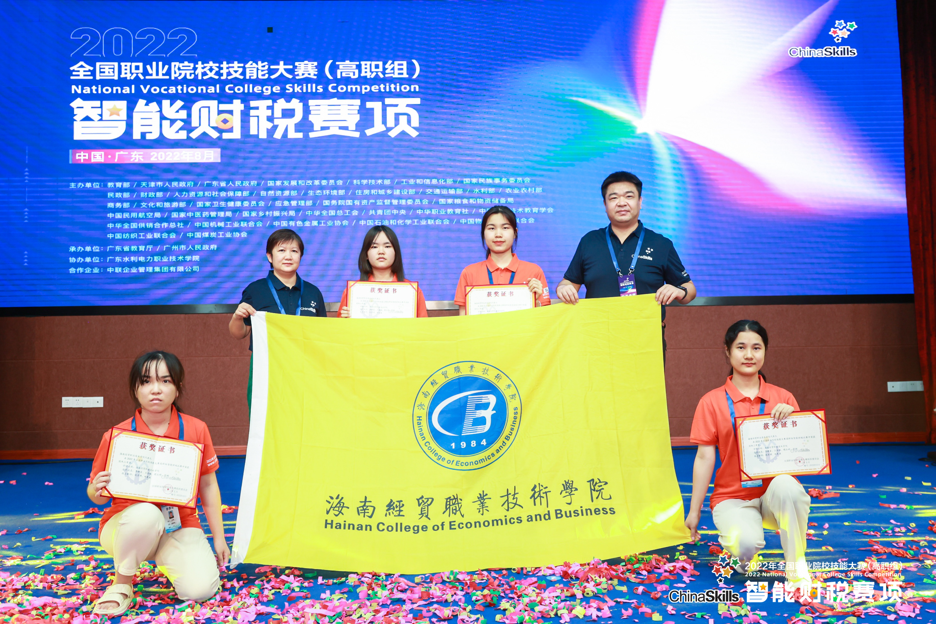 2022年08月21日-23日,2022年全国职业院校技能大赛(高职组)“智能财税”赛项在广东省广州市圆满落幕,由bevictor1946韦德官网bevictor1946韦德官网选派的四位参赛选手王金梅、禤玉婷、张婉、李静蕾组成的组成的海南省代表队获得了团队三等奖的好成绩。