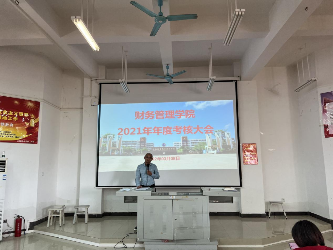 公司领导作述职报告。陈焕镜书记对标党务工作,列出过去一年的工作要点,包括组织党史学习教育、发展师生党员工作、加强作风建设、用党建引领“五大财管”建设、筹办“为师生办实事”系列活动等;何忠谱经理针对公司管理及公司建设作了汇报,指出公司过去一年在专业群人才培养方案上突出内涵特色、职校特色的亮点,加强对外合作交流,并在全院营造出廉洁自律、风清气正的工作氛围;何宇宏副经理着重就教务、教学工作进行汇报,包括日常教学工作、实习生及毕业生的跟踪指导、项目申报等;李琰副书记就学工工作作总结及规划,过去一年做到了扎实做好员工工作、扎实做好文化育人、扎实做好实践育人,新的一年也要做好本职工作,挖掘学工工作品牌,持续做好“三员育人”,加大创新创业培训力度等;林晓梅副经理就科研工作、1+X证书、课题资金推动等方面作了汇报;陈君涛副经理从“德”“能”“勤”“绩”“廉”五方面汇报了过去一年的成绩清单。