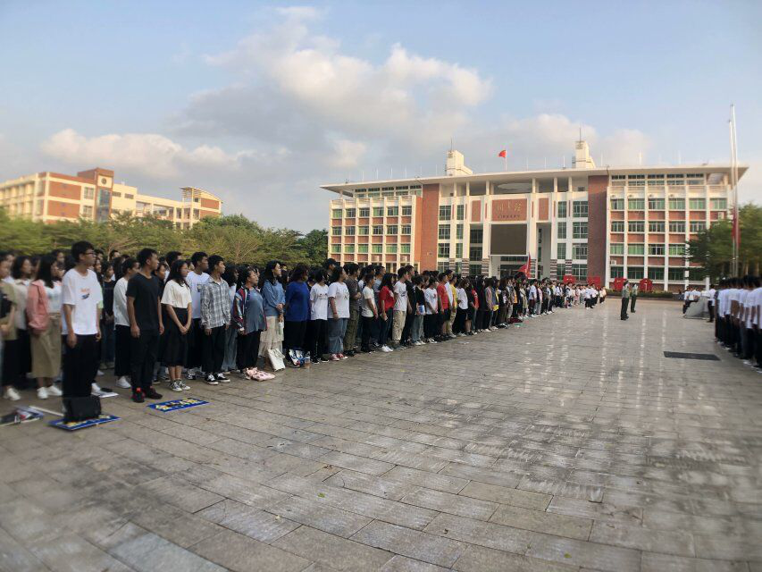 伴随着初升的太阳,国旗手踏着铿锵有力的步伐、昂首阔步由远及近,将国旗护送至升旗台,全体师生肃然站立、神情庄严,在国歌的旋律中,共同注视国旗冉冉升起。
