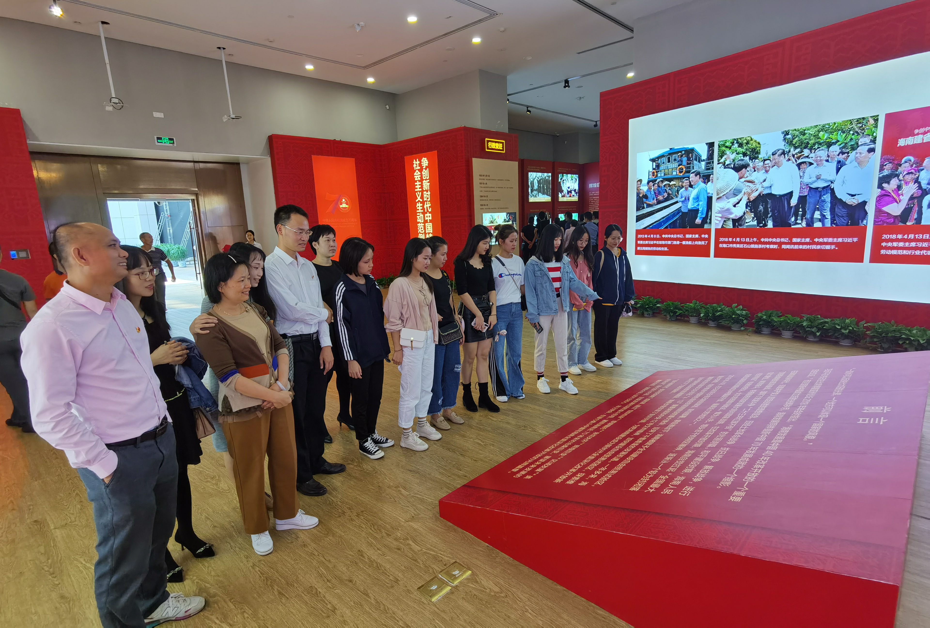 党员同志们跟随着讲解员的步伐,在聆听讲解员讲解的同时结合展览的文字、图片与视频进行学习,仿佛穿越时空隧道身在其中,不禁感叹海南省如今的发展和生活水平变化是如此之快。