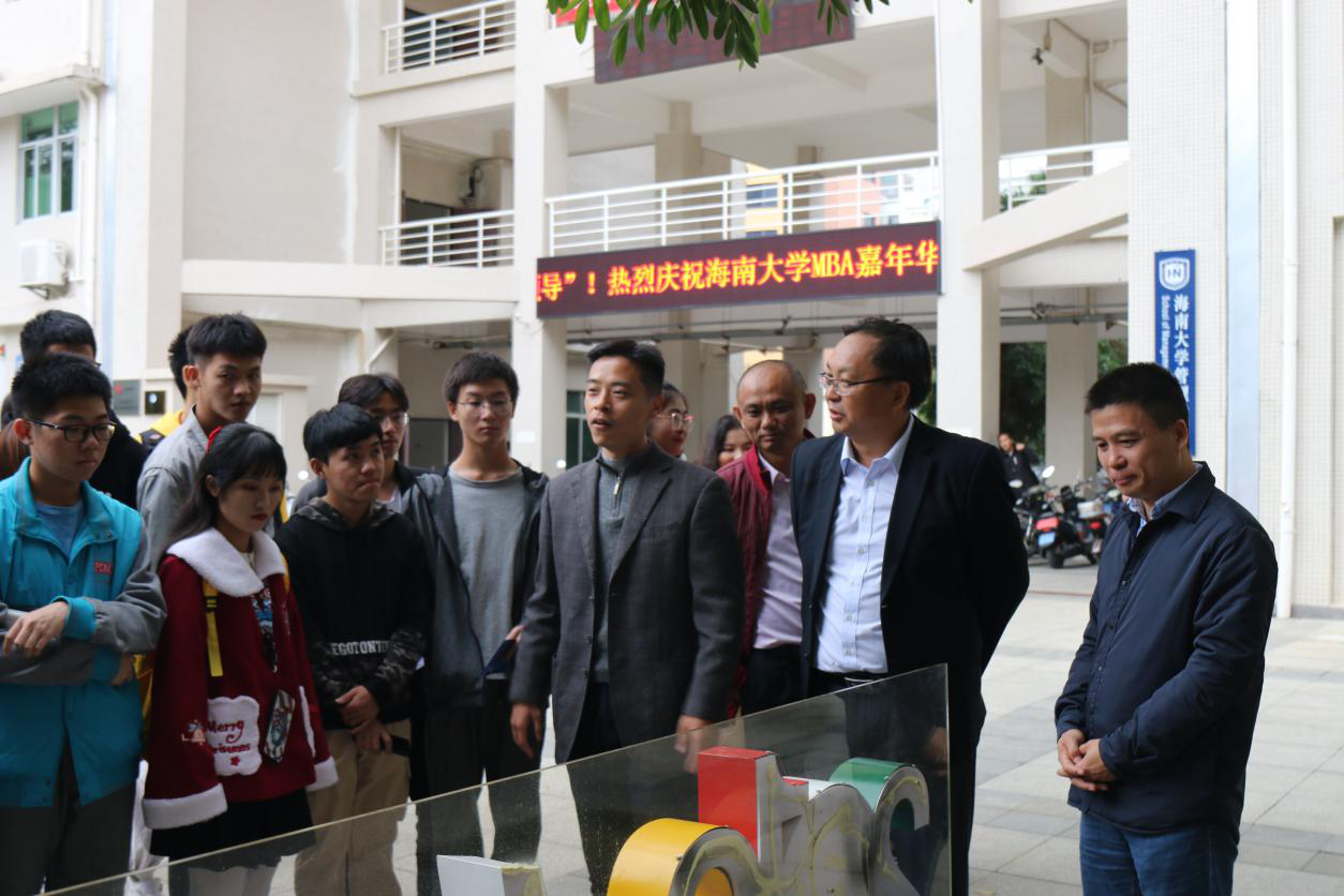在海甸校区北门,财管学子们纷纷下车合影留念,记录这“回家”的美好瞬间。海南大公司史馆位于海南大学北门西侧,是财管学子了解海南大学的第一站。走进展厅,张继友书记如数家珍般的介绍着海大的光辉历史和建校使命,讲解着海大“211工程”和“双一流”建设历程和成就,勉励大家作为海大学子,要不忘初心、牢记使命,要海纳百川、大道致远,要笃学砺能、知行合一,认真学习科学文化知识,锻炼提高综合素质,以青春梦想、用实际行动把握人生出彩的机会。海南大公司史馆共分为三部分:
