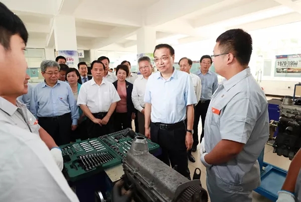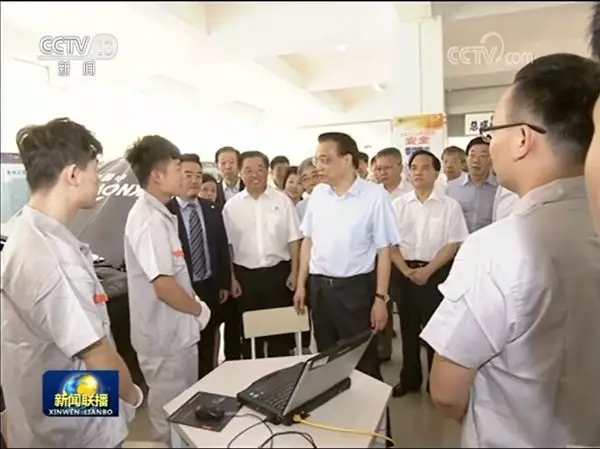 在实训车间,李克强勉励同学们说,国家不仅需要高端科研人才,也非常需要高技能人才,希望你们更加注重坚守专业精神、职业精神和工匠精神,努力顶起中国制造的脊梁。