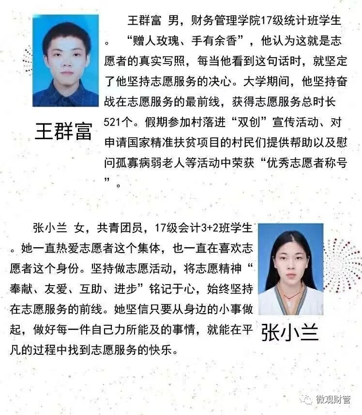 这两位志愿楷模是我们的榜样,我们要以此为标榜,努力投身志愿工作中,发扬我们友爱的精神,把我们的爱与鼓舞像阳光般洒落在需要我们的人身上,让温暖存于人间。