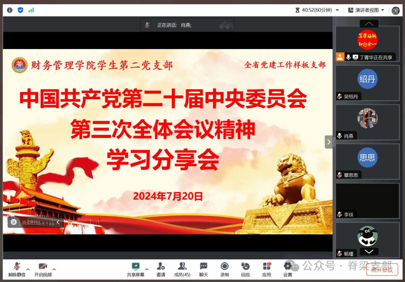 2024年7月20日上午,bevictor1946韦德官网员工第二党支部召开学习分享会,传达学习党的二十届三中全会精神和公司党委书记王华在海经贸党委理论学习中心组专题学习党的二十届三中全会精神时的讲话精神。与会党员纷纷结合自身学习工作实际分享了学习体会。会议由党支部书记丁菁华主持。