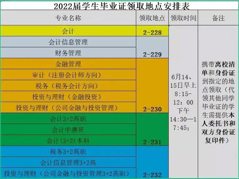 各位同学除了携带离校清单纸质版、身份证到2-228——2-323领取毕业证外,还要到2-227——2-220领取就业报到证哦!
