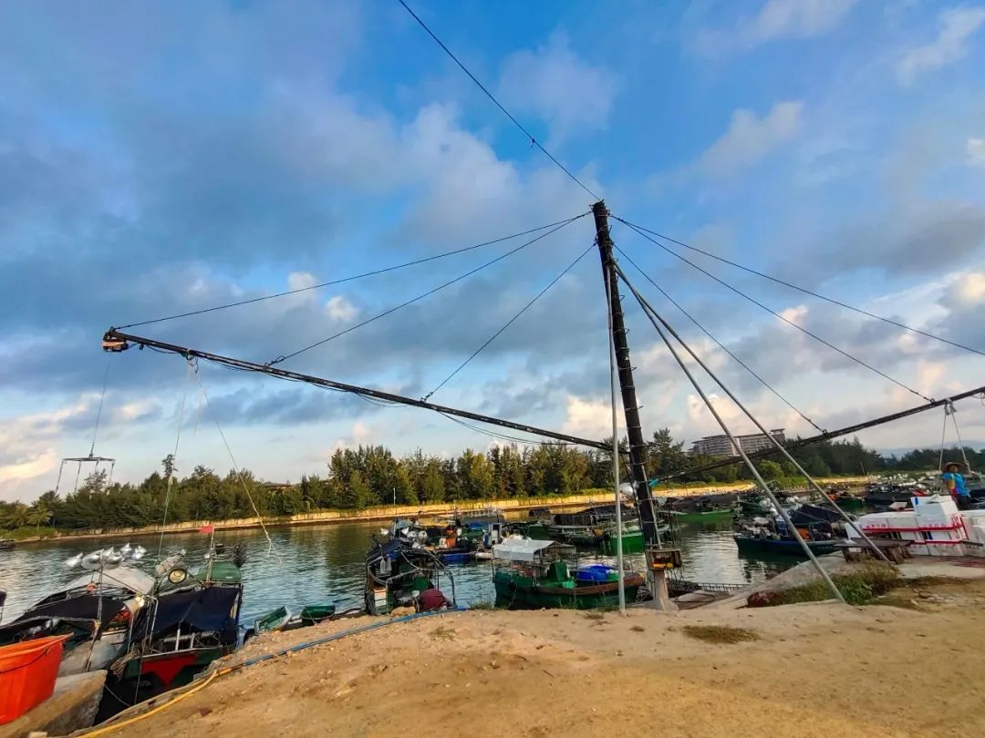 为了观察疍家渔民打鱼归来的情景,实践团队24日早上六点便赶到赤岭码头。早晨的码头是如此的热闹,以至于实践团队还没走到码头就听到喧哗的买卖声。与渔民的简单交谈得知,原先经济落后时,鱼筐都是渔民一筐一筐地搬上岸边,很消耗体力且搬运时间长。现在经济发达了,重量大的鱼筐都是由两旁的机器钩住随之运到岸上,而渔民只需搬运些较轻的鱼筐。经渔民的同意,实践团队登上他们平时在海上居住的渔船,热情的渔民与实践团队讲述了船上的各种设施,如上方的网可以用于休息;船舱除了用于储存捕捞来的鱼,还有专门休息的船舱;渔船上边悬挂着的照明灯是为了夜里更好吸引鱼群来到船的周围;岸上两间小房间是之前贮存物资的地方……