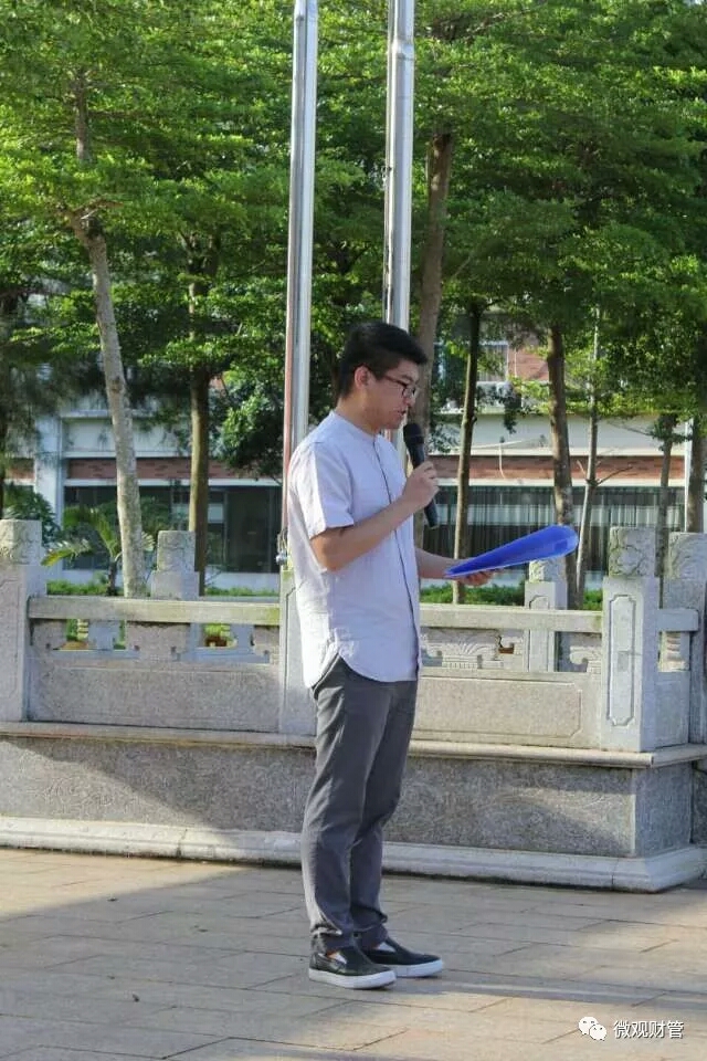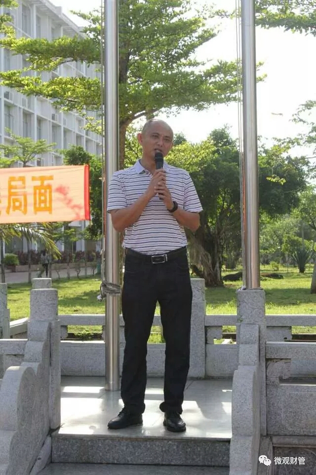 随后公司党总支书记陈焕镜教授作国旗下讲话,陈书记重温了习近平总书记在海南建省办经济特区30周年庆祝大会上的讲话内容,带领全体师生学习了中共中央对于海南深化开放的31条指导意见,帮助员工了解海南即将建设的中国特色自由贸易港,分析当前国际形势,对美好新海南作出展望。陈书记还鼓励全体财管学子要努力学习,探索科学文化知识,发扬阳光财管精神,坚持阳光体育、阳光健身,为今后建设祖国做出奉献! 李响老师在总结时希望全体财管学子牢记陈书记的教导,树立远大理想,将个人命运与美好新海南建设以及中国特色社会主义建设的伟大事业紧密结合,认真学习,锤炼技能,锐意进取,开拓创新,做新时代有理想有本领有担当的新青年!