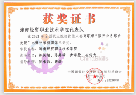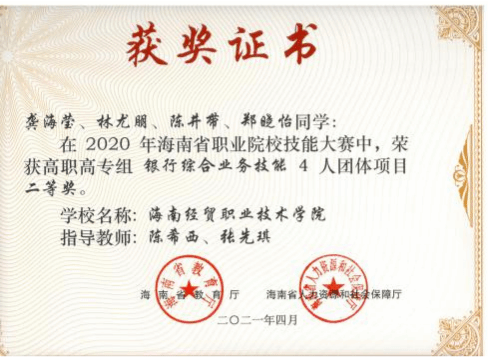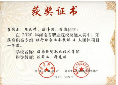 陈丽琴,2017级金融服务与管理专业,获得海南省银行综合业务技能竞赛二等奖,2020年就读海南师范大学联合bevictor1946韦德官网金融专升本。